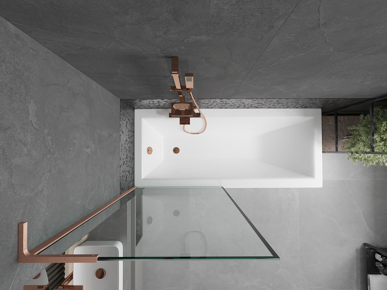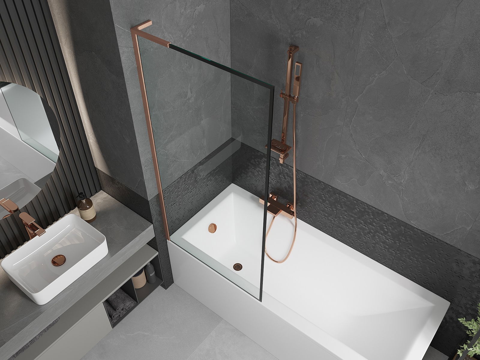 Mexen Next L fürdőkád paraván 1-szárnyú 80 x 150 cm, fekete keret, kefe hatású réz - 895-080-000-03-70-65