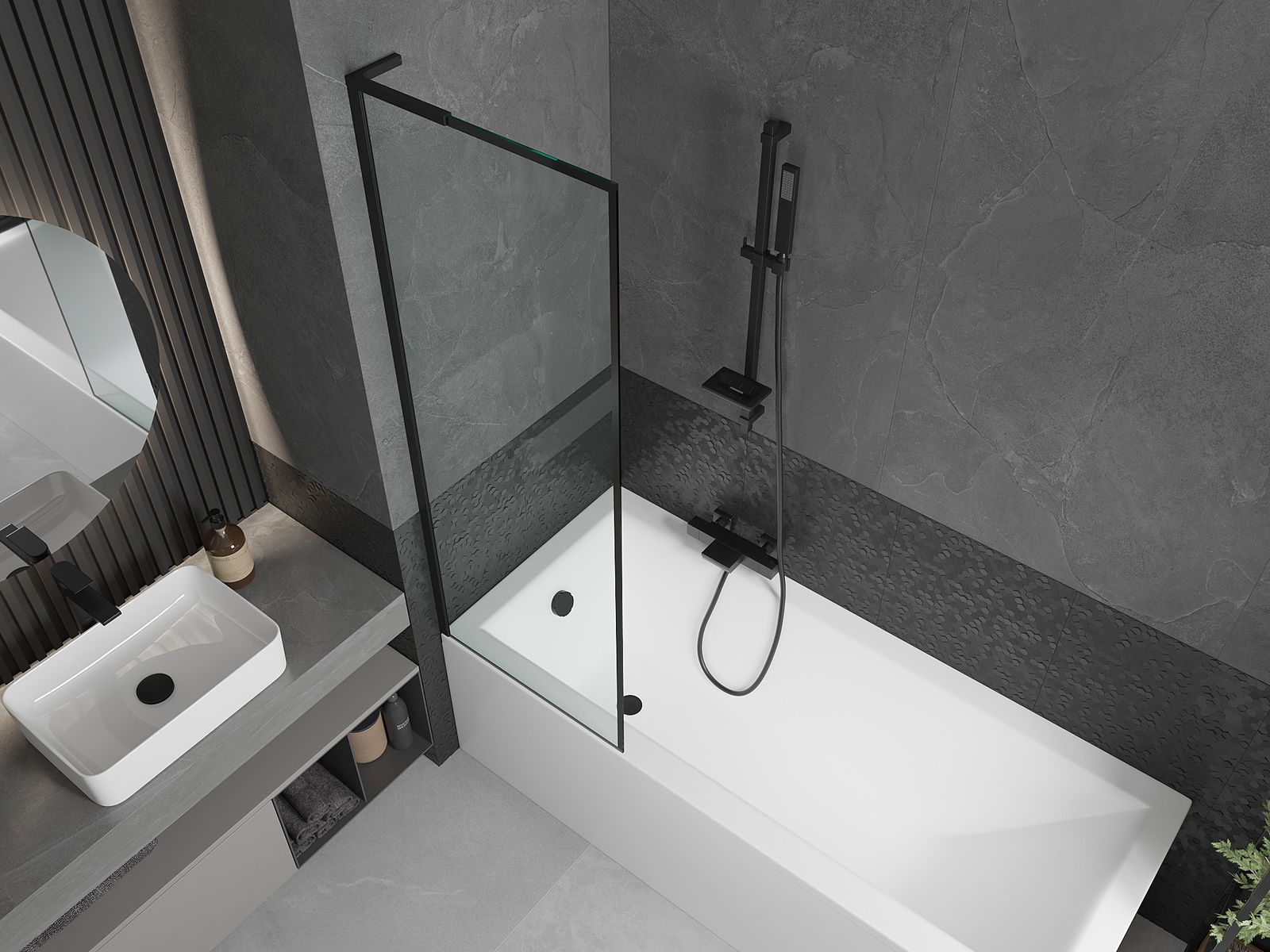 Mexen Next L 1-szárnyú kádparaván, 60 x 150 cm, fekete keret, fekete - 895-060-000-03-70-70