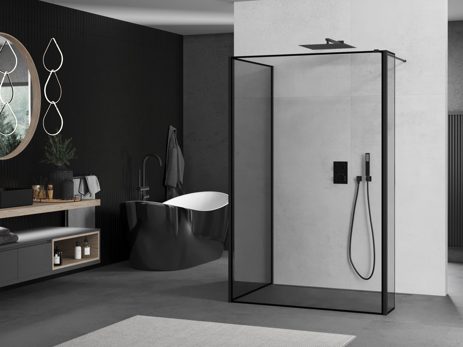 A terméket igény szerint felszerelheti akár a zuhanytálcára, akár közvetlenül a padlóra. Az univerzális szerelési mód lehetővé teszi a termék alkalmazkodását különböző típusú fürdőszobákhoz és térbeli konfigurációkhoz.