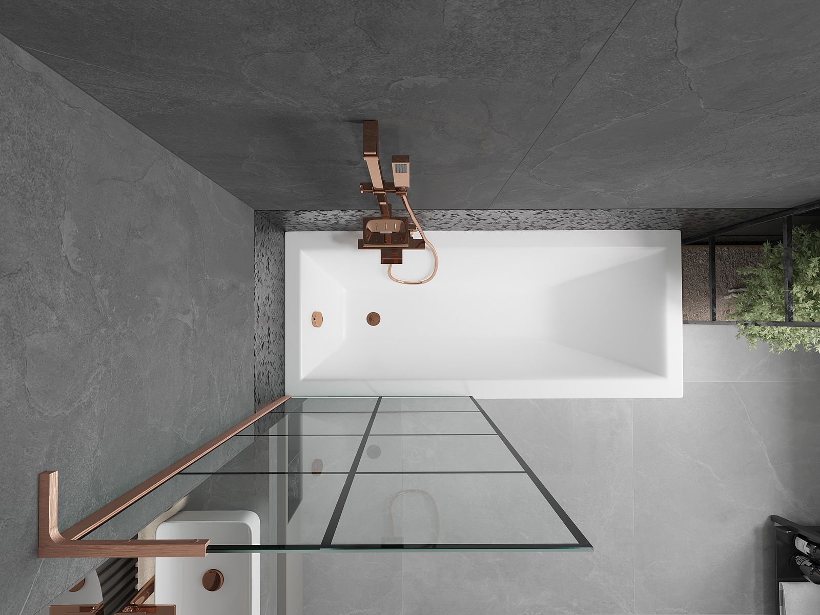 Mexen Next L egyajtós fürdőkád paraván 80 x 150 cm, fekete rács, matt réz - 895-080-000-03-77-65