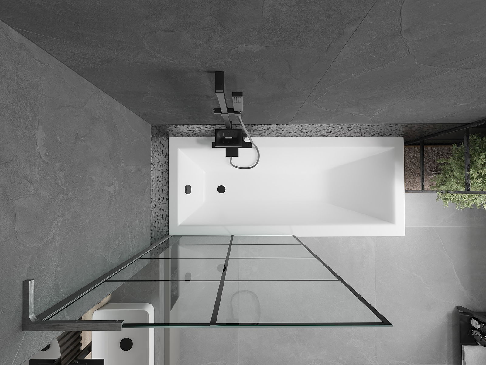 Mexen Next L egyrészes kádparavan 90 x 150 cm, fekete rács, gun gray kefélt - 895-090-000-03-77-66