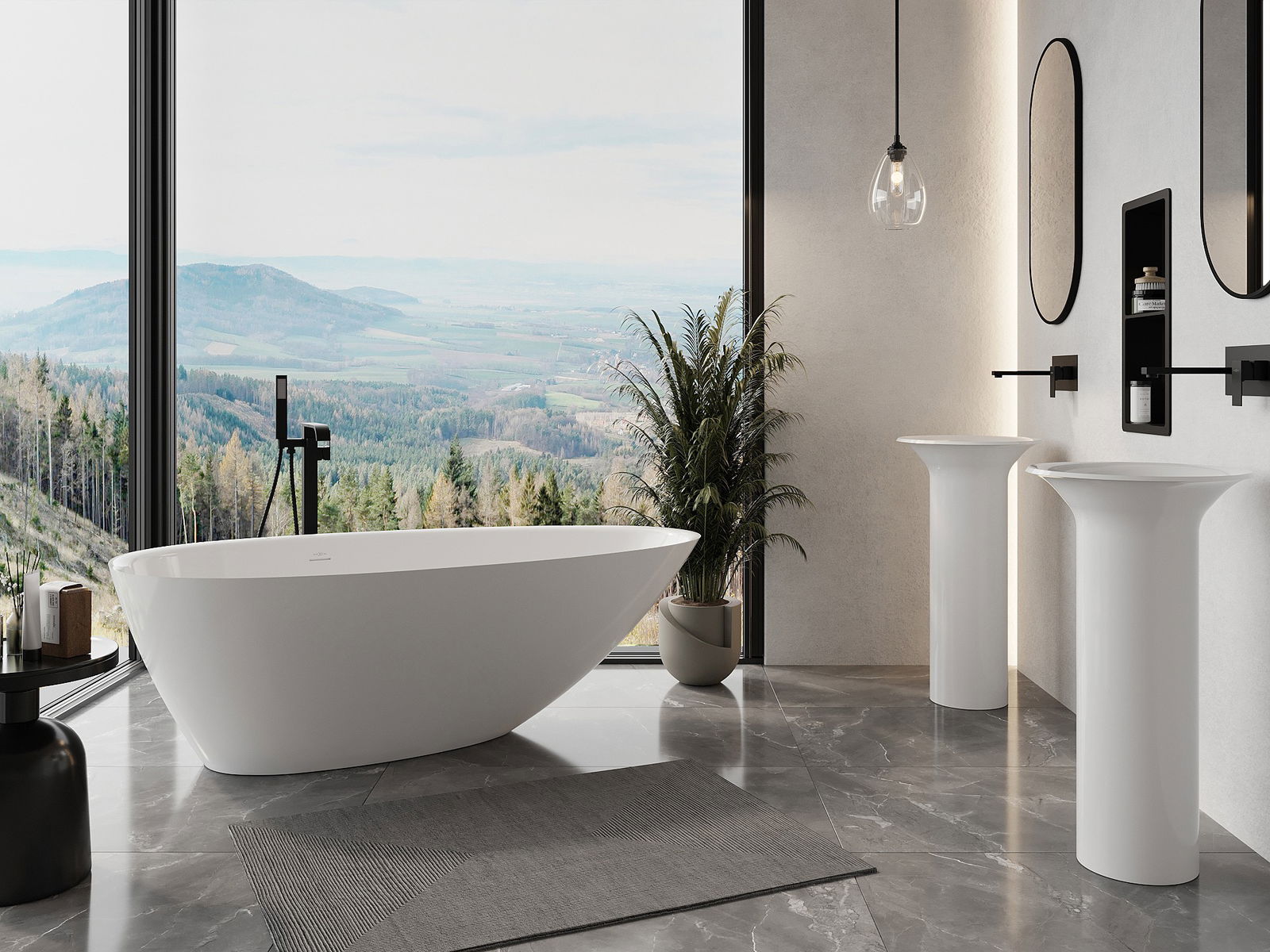 Mexen Milano szabadon álló kád konglomerátumból 170 x 86 cm, fehér fényes - 57301708510
