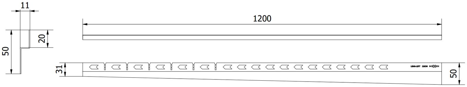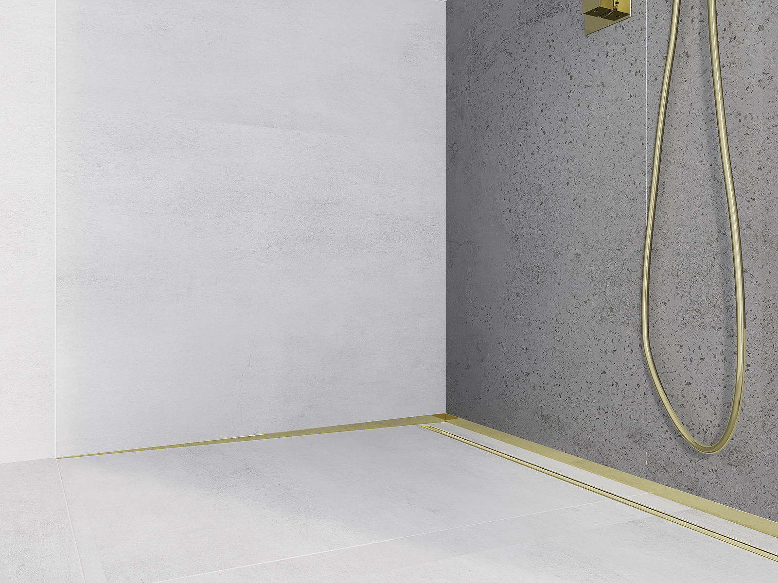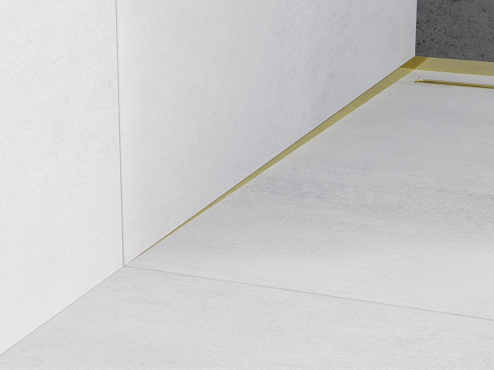 A szegély oldalképe egyrészt lejtést biztosít a lináris lefolyóhoz, anélkül hogy ún. borítékot kellene kialakítani
