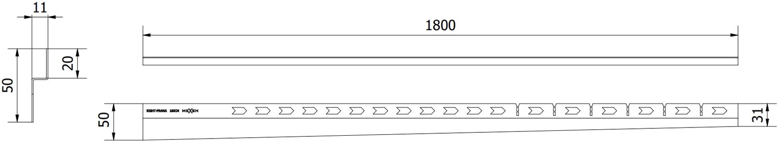 A szalag oldalsó éle egyoldalú lejtést biztosít a lineáris lefolyó felé anélkül, hogy ún. borítékot kellene készíteni