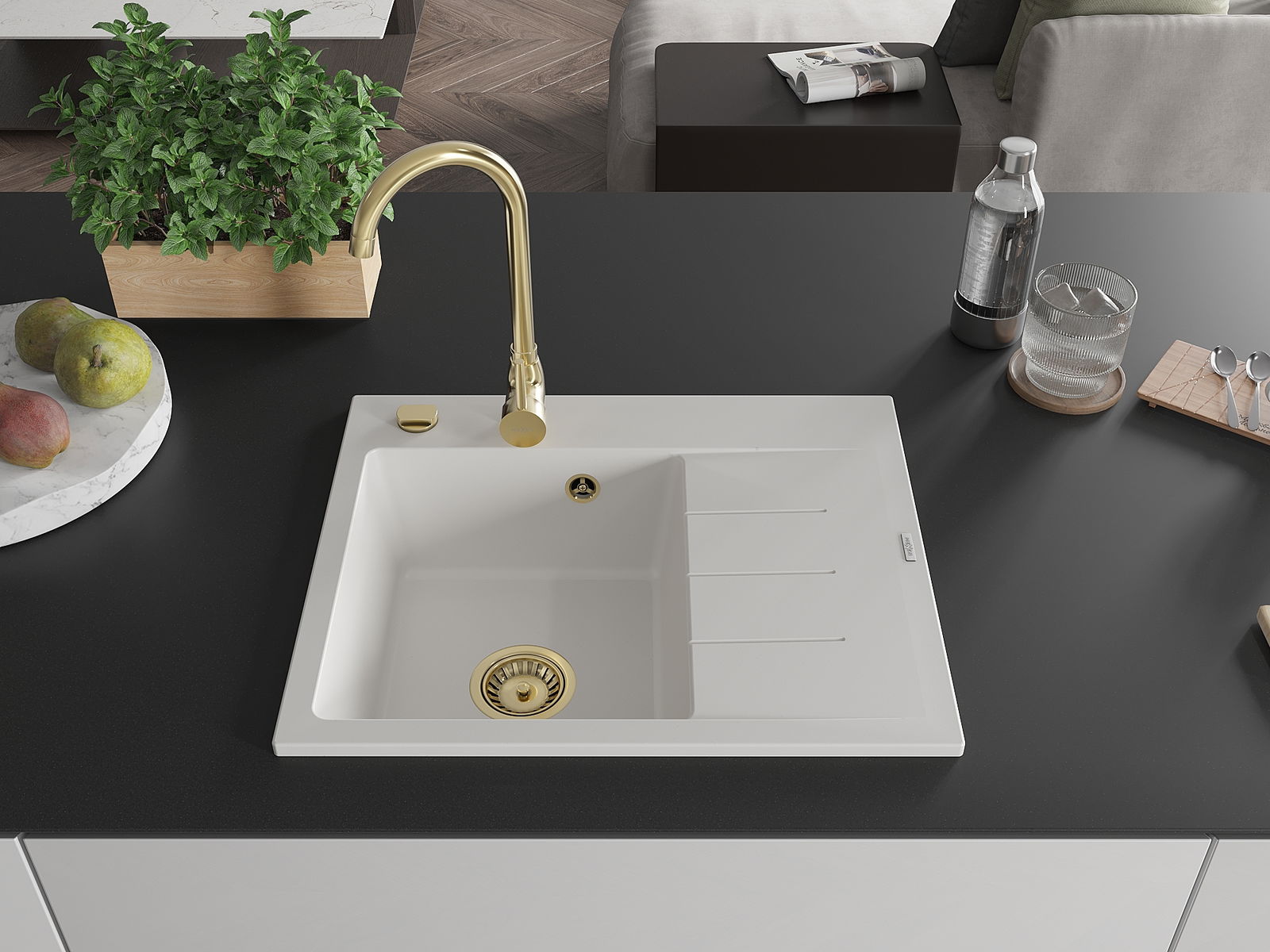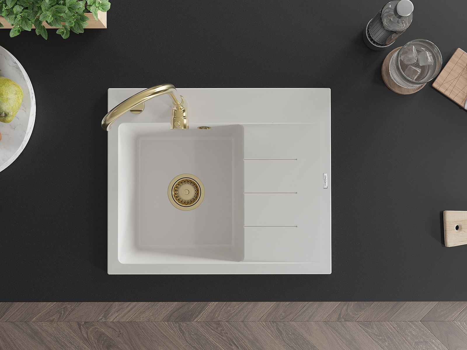 A mosogató magas minőségű gránitból készült. Elegáns, de mindenekelőtt praktikus kiegészítője minden konyhának, függetlenül annak stílusától. A gránit magas minősége és tartóssága hosszú távú használatot biztosít.