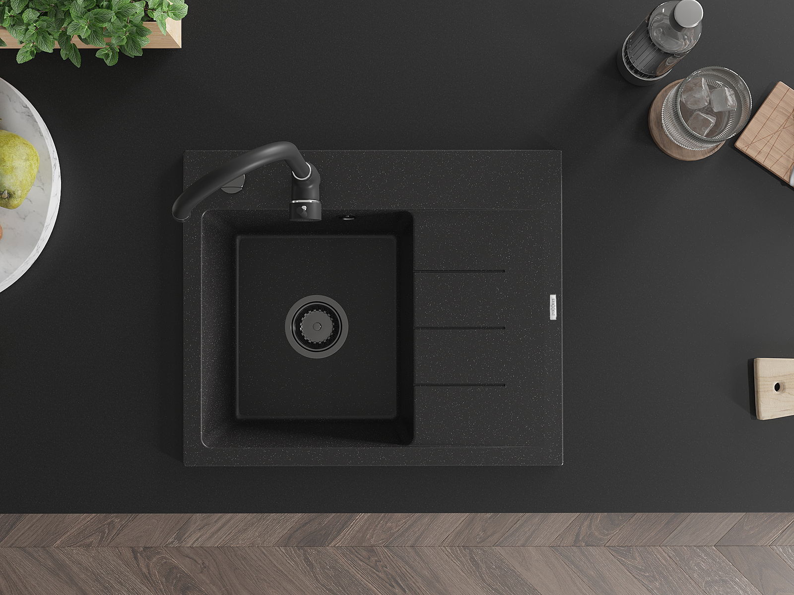 A mosogató magas minőségű gránitból készült. Elegáns, de mindenekelőtt praktikus kiegészítője minden konyhának, függetlenül annak stílusától. A gránit magas minősége és tartóssága hosszú távú használatot biztosít.