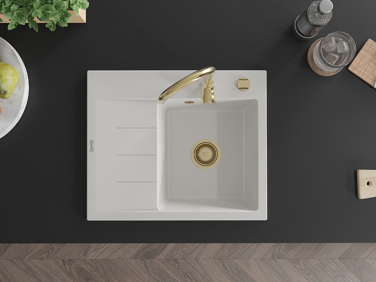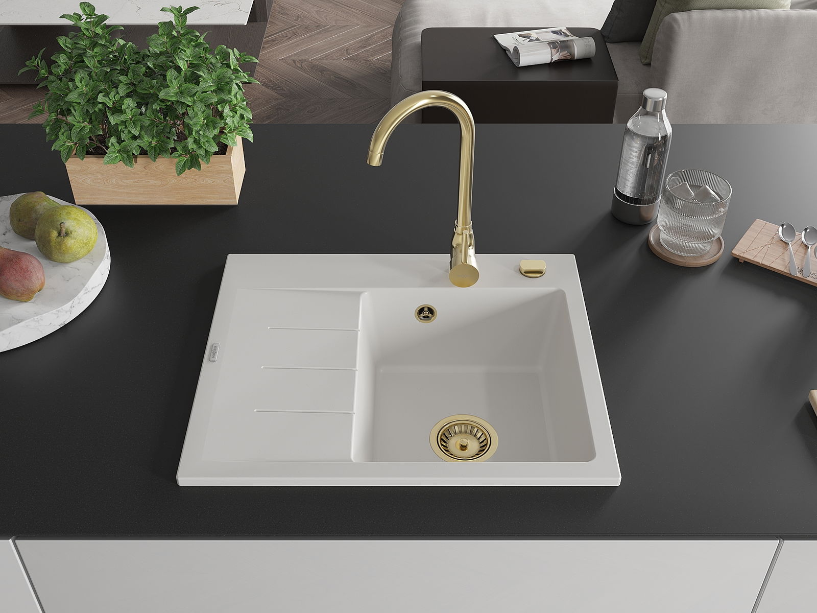 A mosogató magas minőségű gránitból készült. Elegáns, de mindenekelőtt praktikus kiegészítője minden konyhának, függetlenül annak stílusától. A gránit magas minősége és tartóssága hosszú távú használatot biztosít.