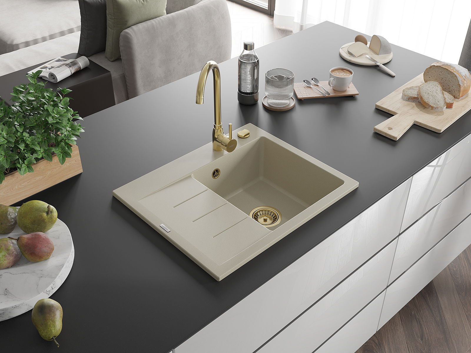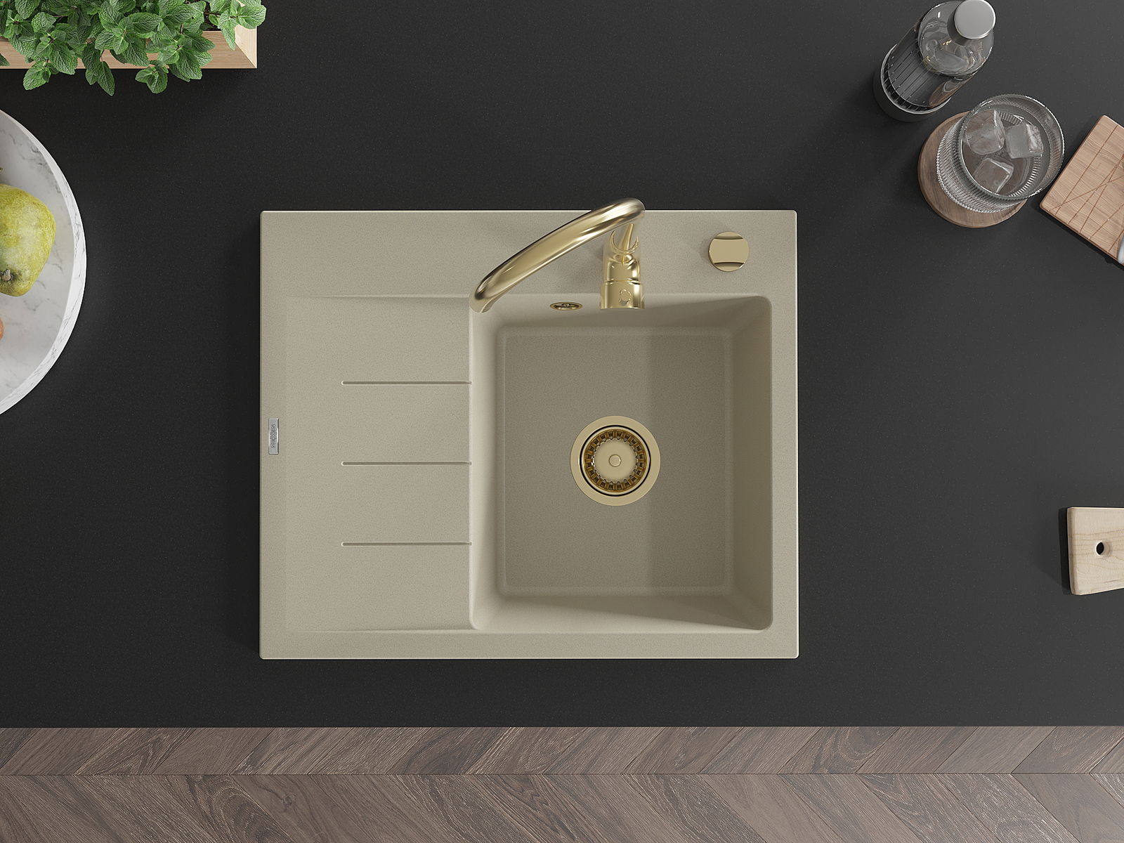 A mosogató magas minőségű gránitból készült. Elegáns, de mindenekelőtt praktikus kiegészítője minden konyhának, függetlenül annak stílusától. A gránit magas minősége és tartóssága hosszú távú használatot biztosít.