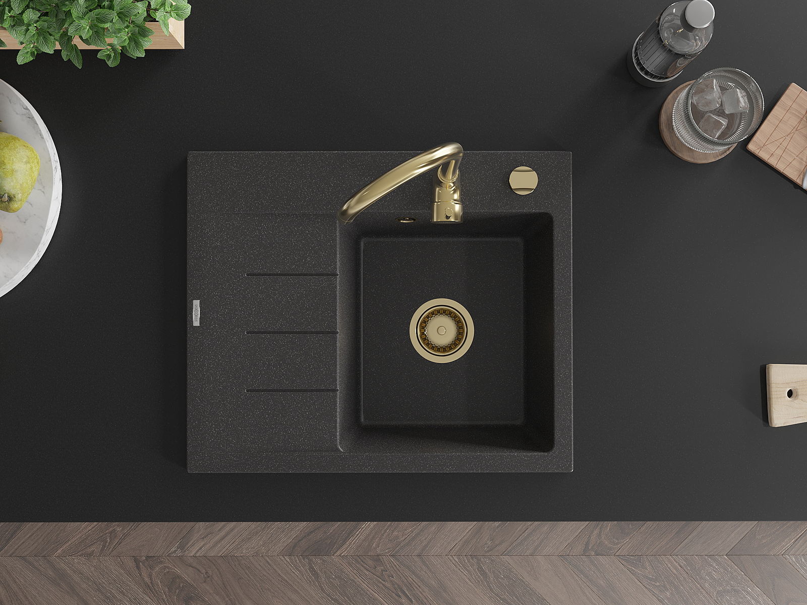 A mosogató magas minőségű gránitból készült. Elegáns, de mindenekelőtt praktikus kiegészítője minden konyhának, függetlenül annak stílusától. A gránit magas minősége és tartóssága hosszú távú használatot biztosít.