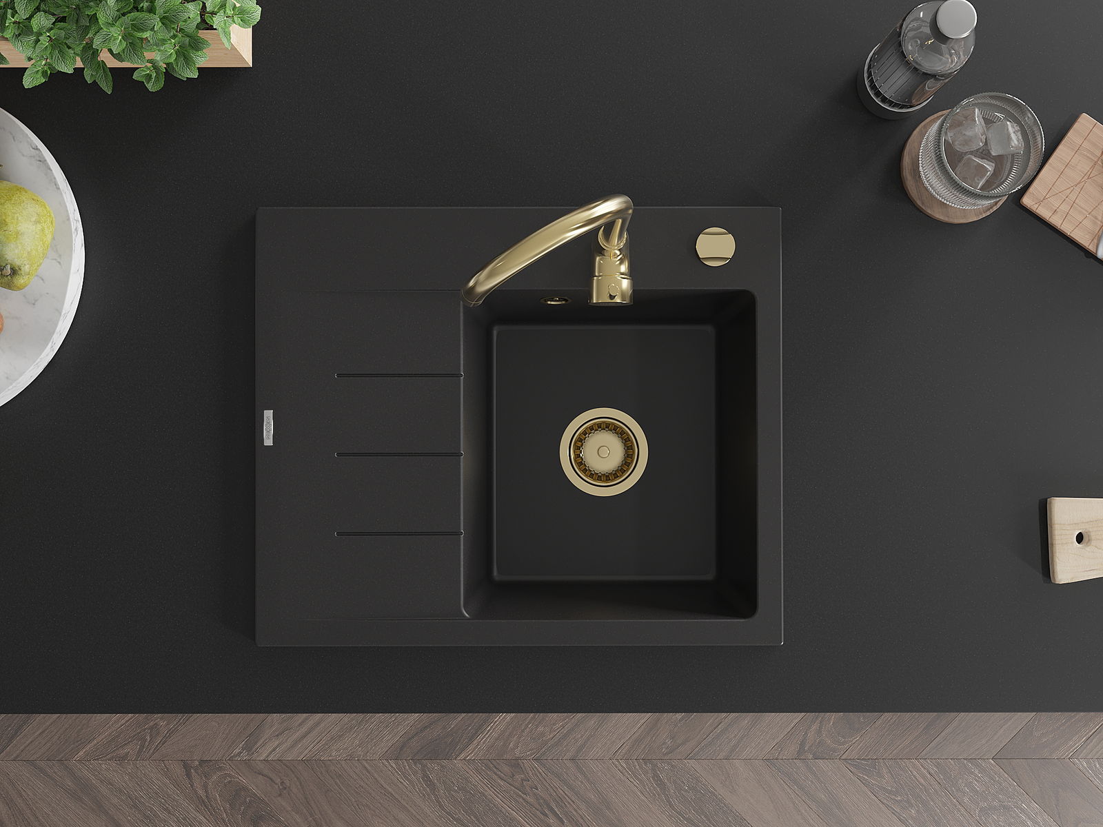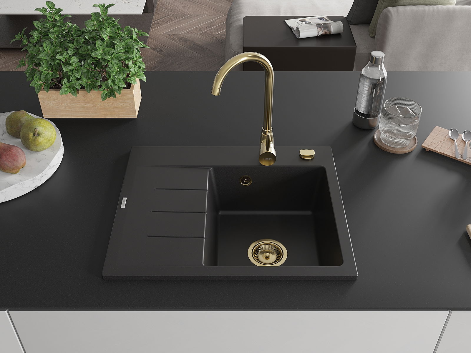 A mosogató magas minőségű gránitból készült. Elegáns, de mindenekelőtt praktikus kiegészítője minden konyhának, függetlenül annak stílusától. A gránit magas minősége és tartóssága hosszú távú használatot biztosít.