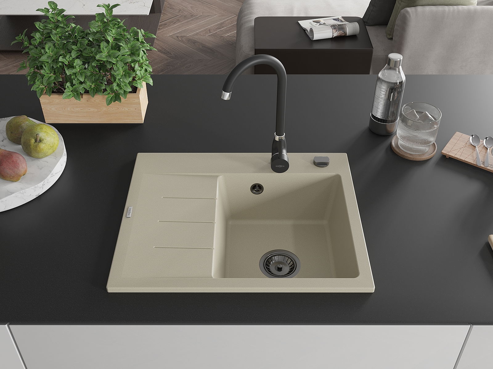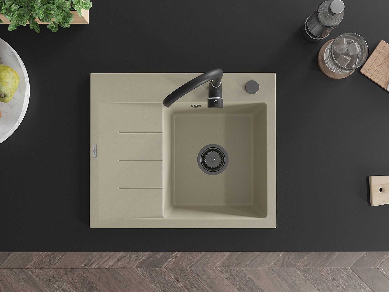 A mosogató magas minőségű gránitból készült. Elegáns, de mindenekelőtt praktikus kiegészítője minden konyhának, függetlenül annak stílusától. A gránit magas minősége és tartóssága hosszú távú használatot biztosít.