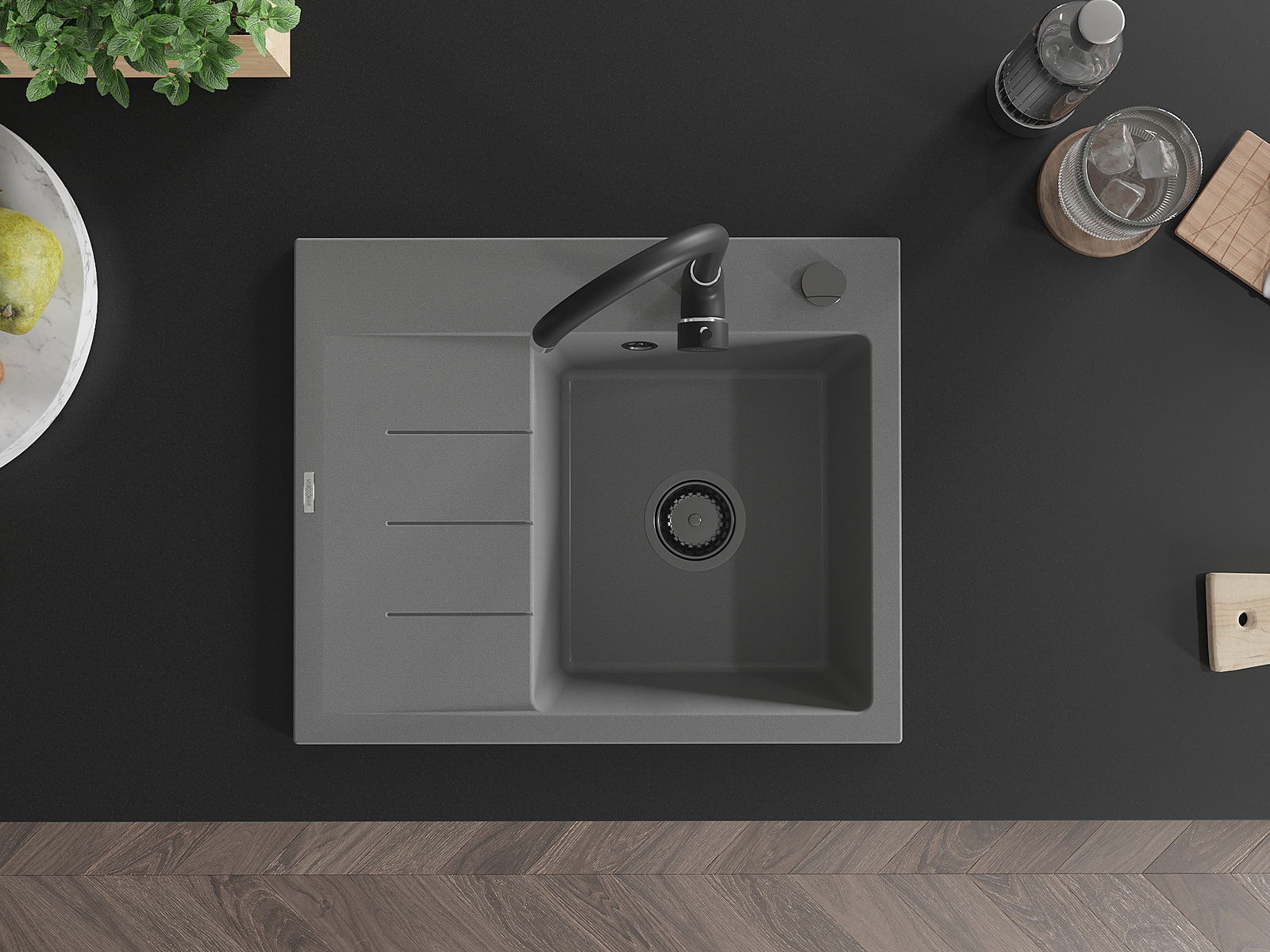 A mosogató magas minőségű gránitból készült. Elegáns, de mindenekelőtt praktikus kiegészítője minden konyhának, függetlenül annak stílusától. A gránit magas minősége és tartóssága hosszú távú használatot biztosít.