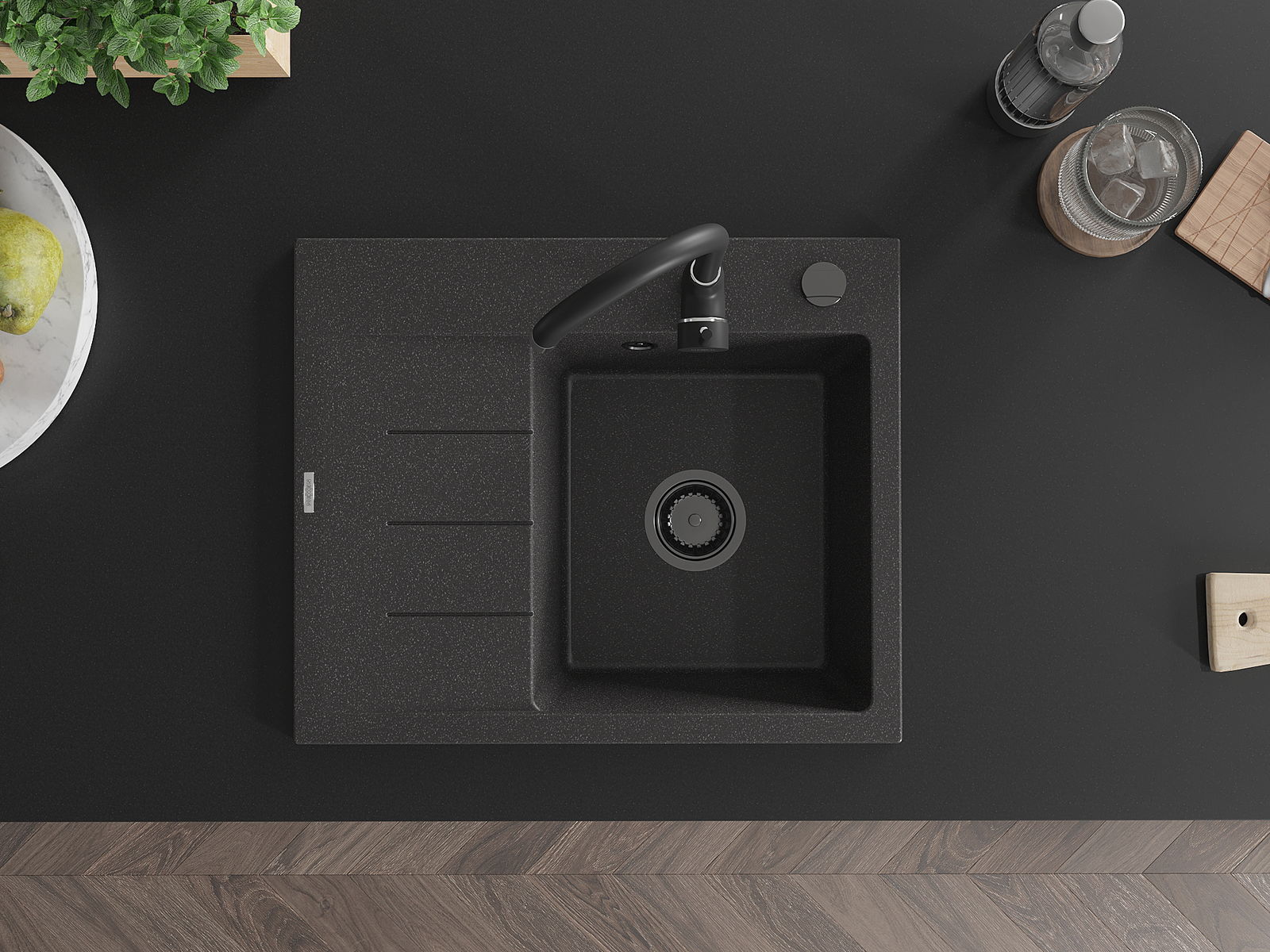 A mosogató magas minőségű gránitból készült. Elegáns, de mindenekelőtt praktikus kiegészítője minden konyhának, függetlenül annak stílusától. A gránit magas minősége és tartóssága hosszú távú használatot biztosít.