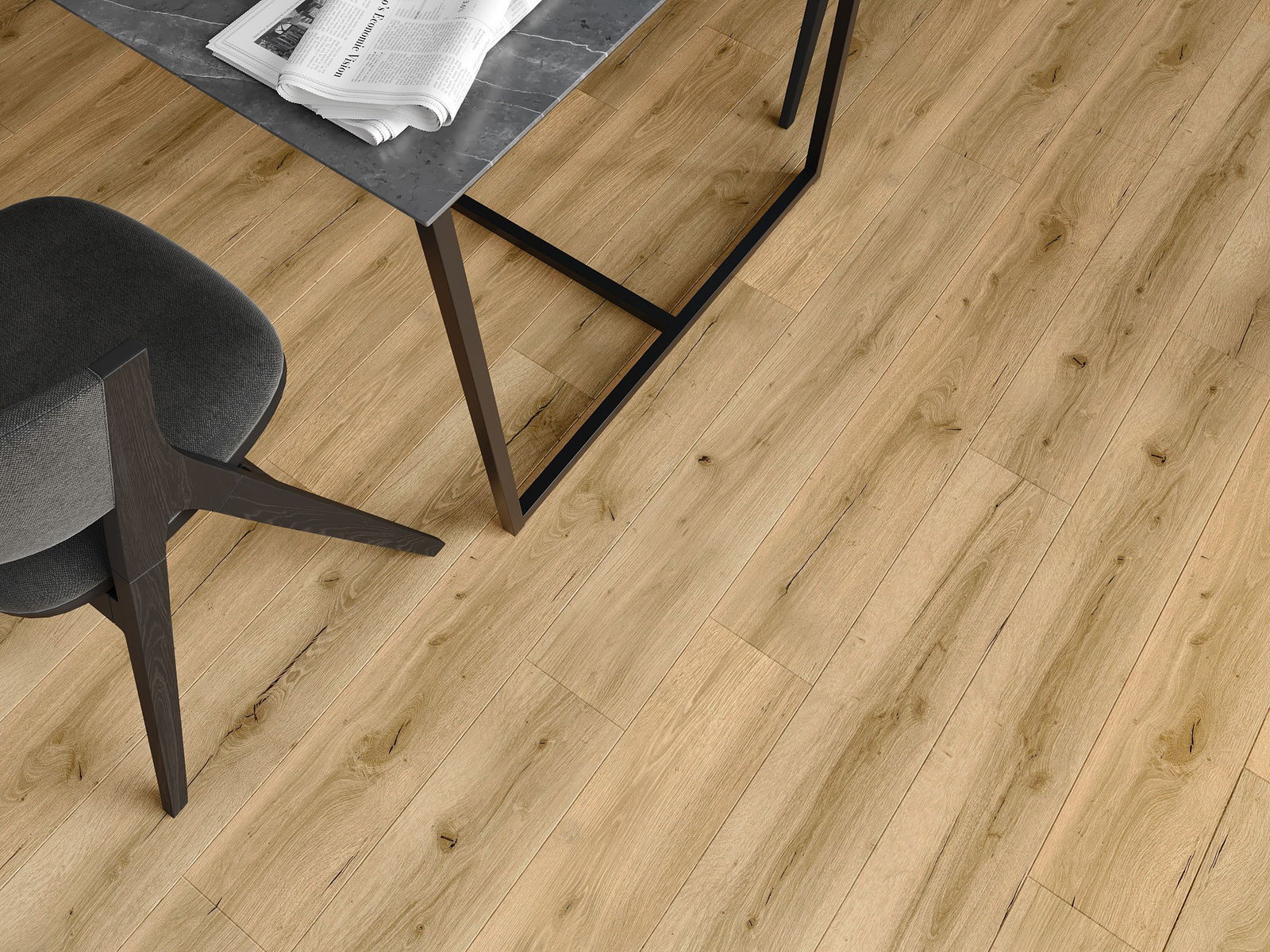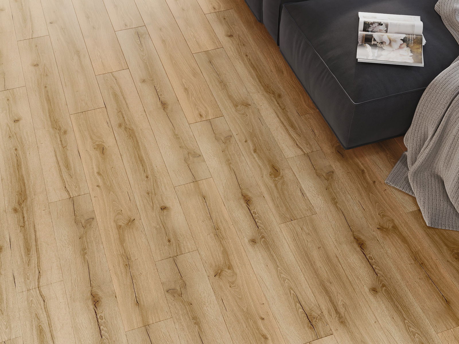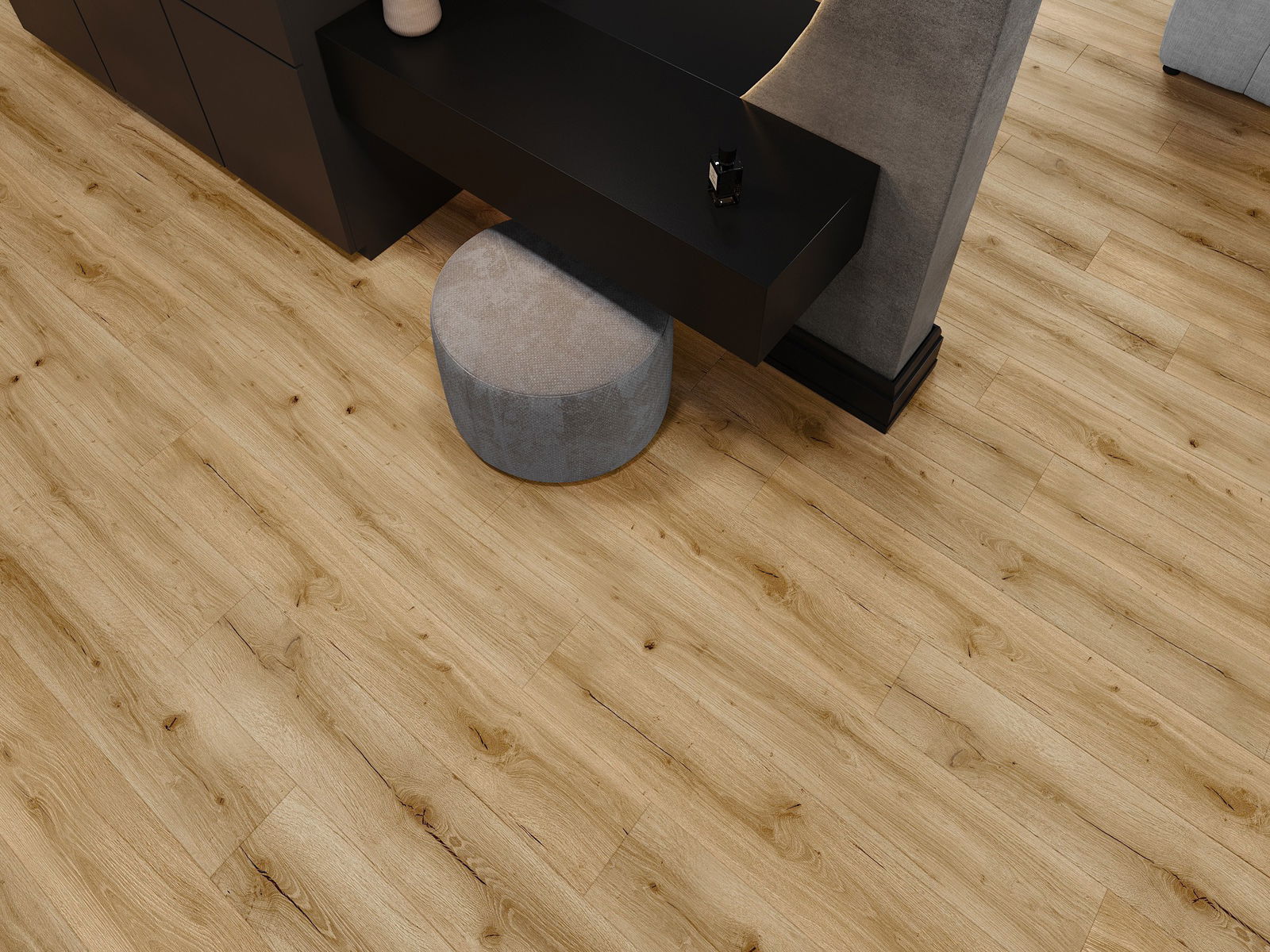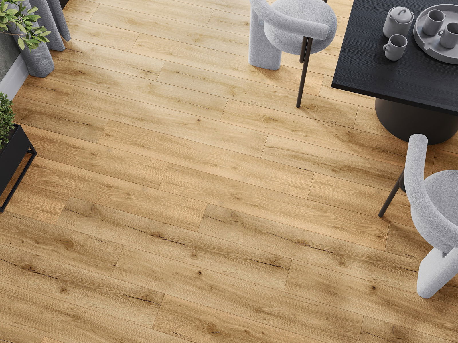 A panelek 4 oldali fugával rendelkeznek - minden oldal úgy lett kimarva, hogy összerakás után V alakú illesztés keletkezzen. Az ilyen dizájn hatására a padló kifejezettebb szerkezetet kap, ami mélységet és esztétikai jelleget ad neki. Ez a hatás különösen a modern berendezésekben értékelhető, ahol a részletek kiemelik a belső tér egyedi megjelenését.
