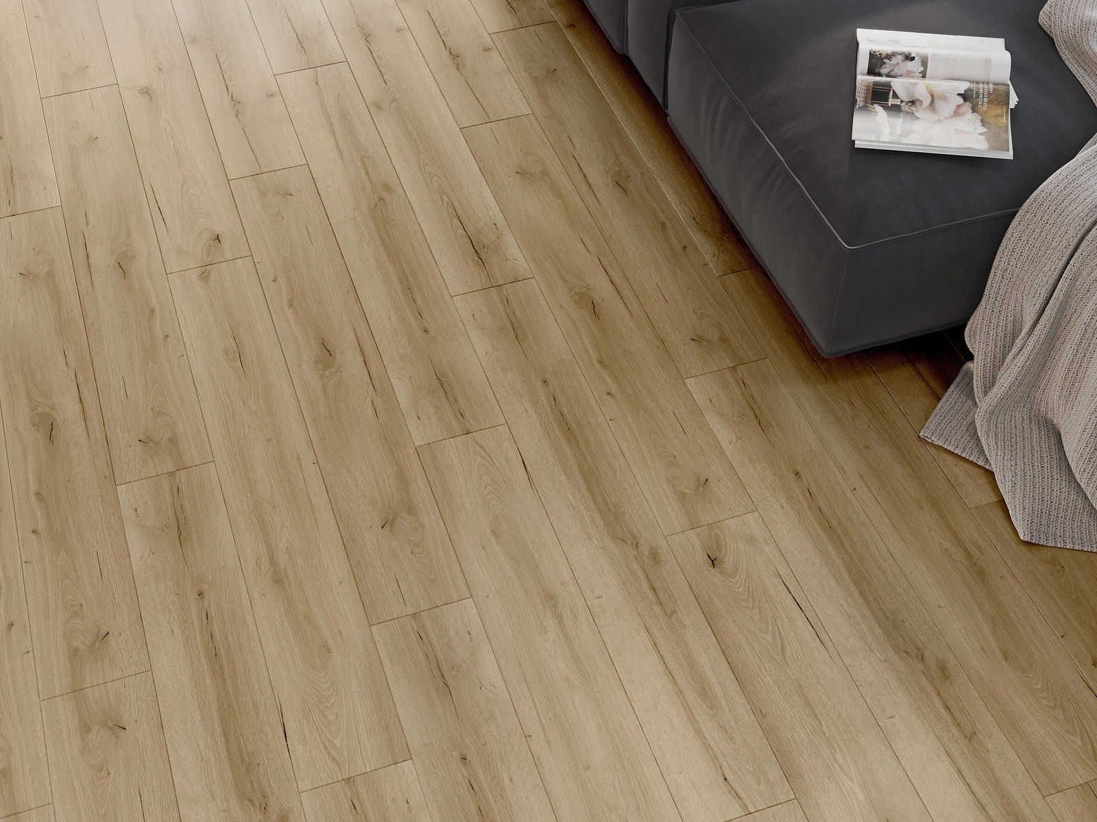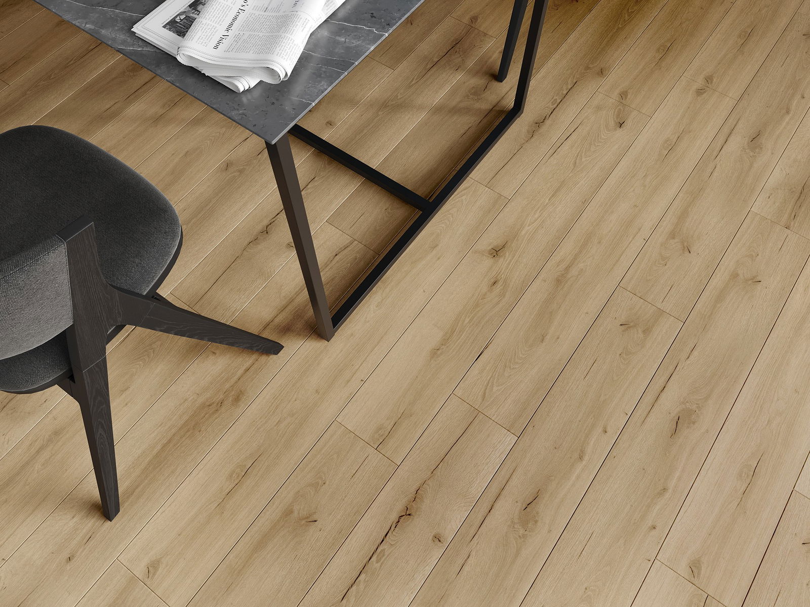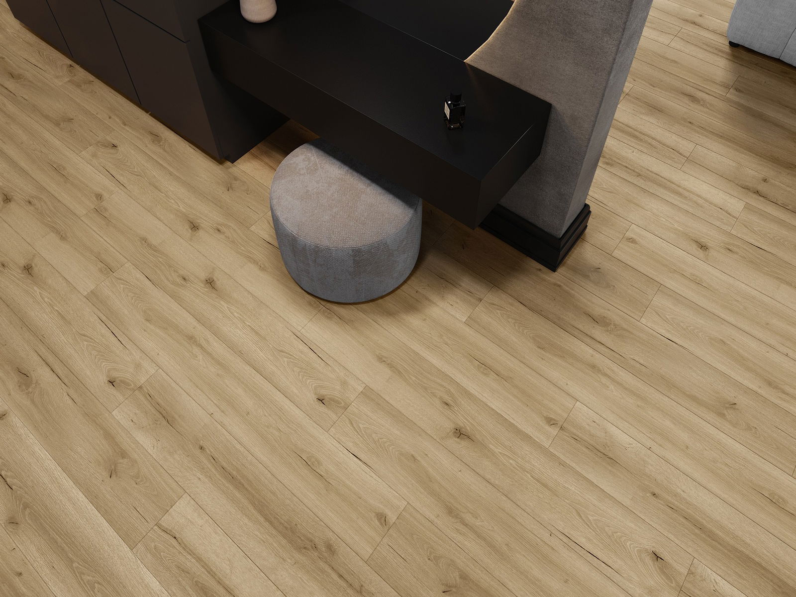 A panelek 4 oldali fugával rendelkeznek - minden oldal úgy lett kimarva, hogy összerakás után V alakú illesztés keletkezzen. Az ilyen dizájn hatására a padló kifejezettebb szerkezetet kap, ami mélységet és esztétikai jelleget ad neki. Ez a hatás különösen a modern berendezésekben értékelhető, ahol a részletek kiemelik a belső tér egyedi megjelenését.