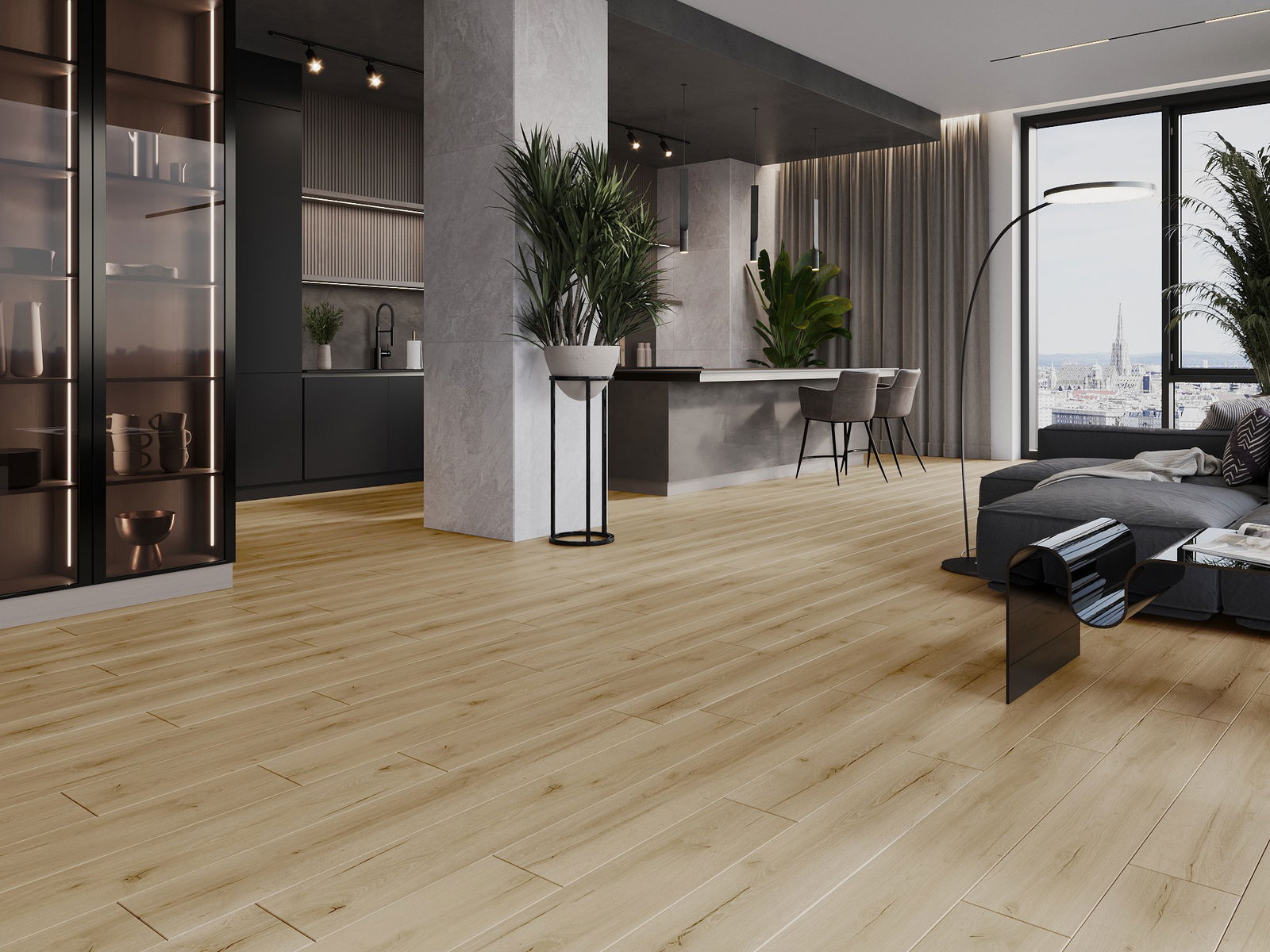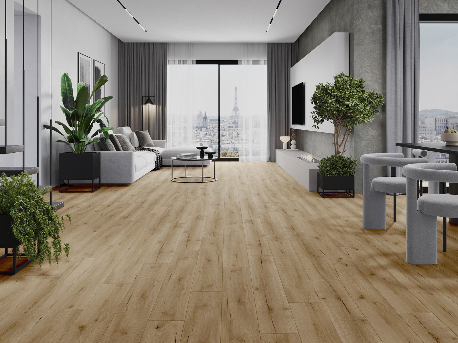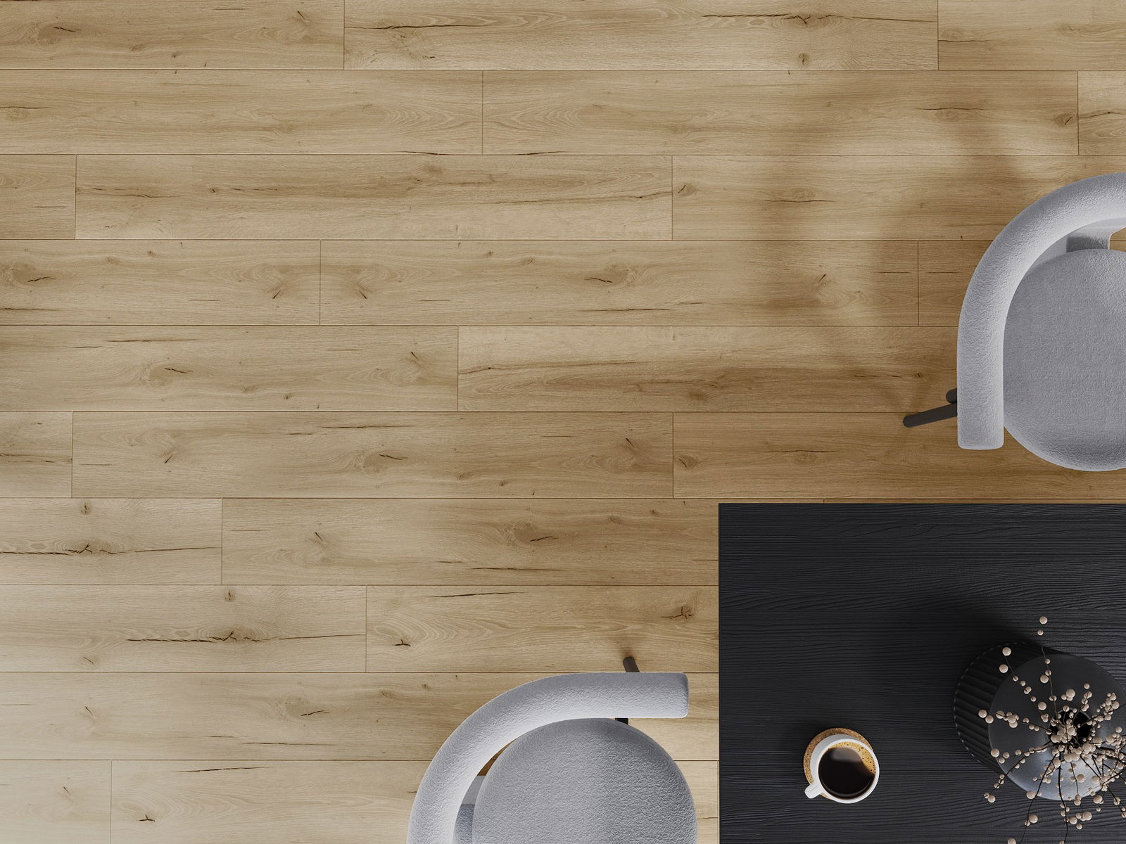 A panelek 4 oldali fugával rendelkeznek - minden oldal úgy lett kimarva, hogy összerakás után V alakú illesztés keletkezzen. Az ilyen dizájn hatására a padló kifejezettebb szerkezetet kap, ami mélységet és esztétikai jelleget ad neki. Ez a hatás különösen a modern berendezésekben értékelhető, ahol a részletek kiemelik a belső tér egyedi megjelenését.