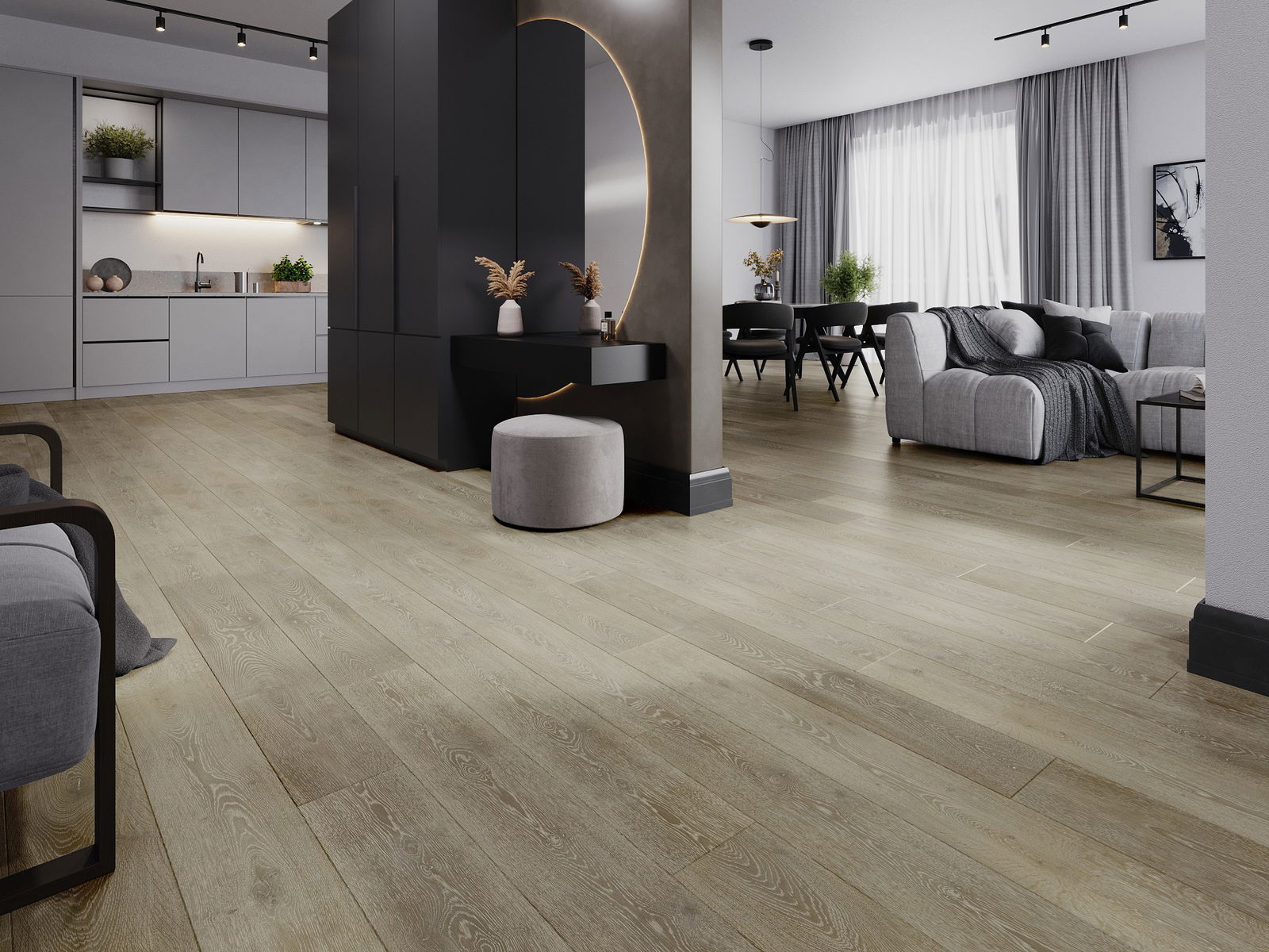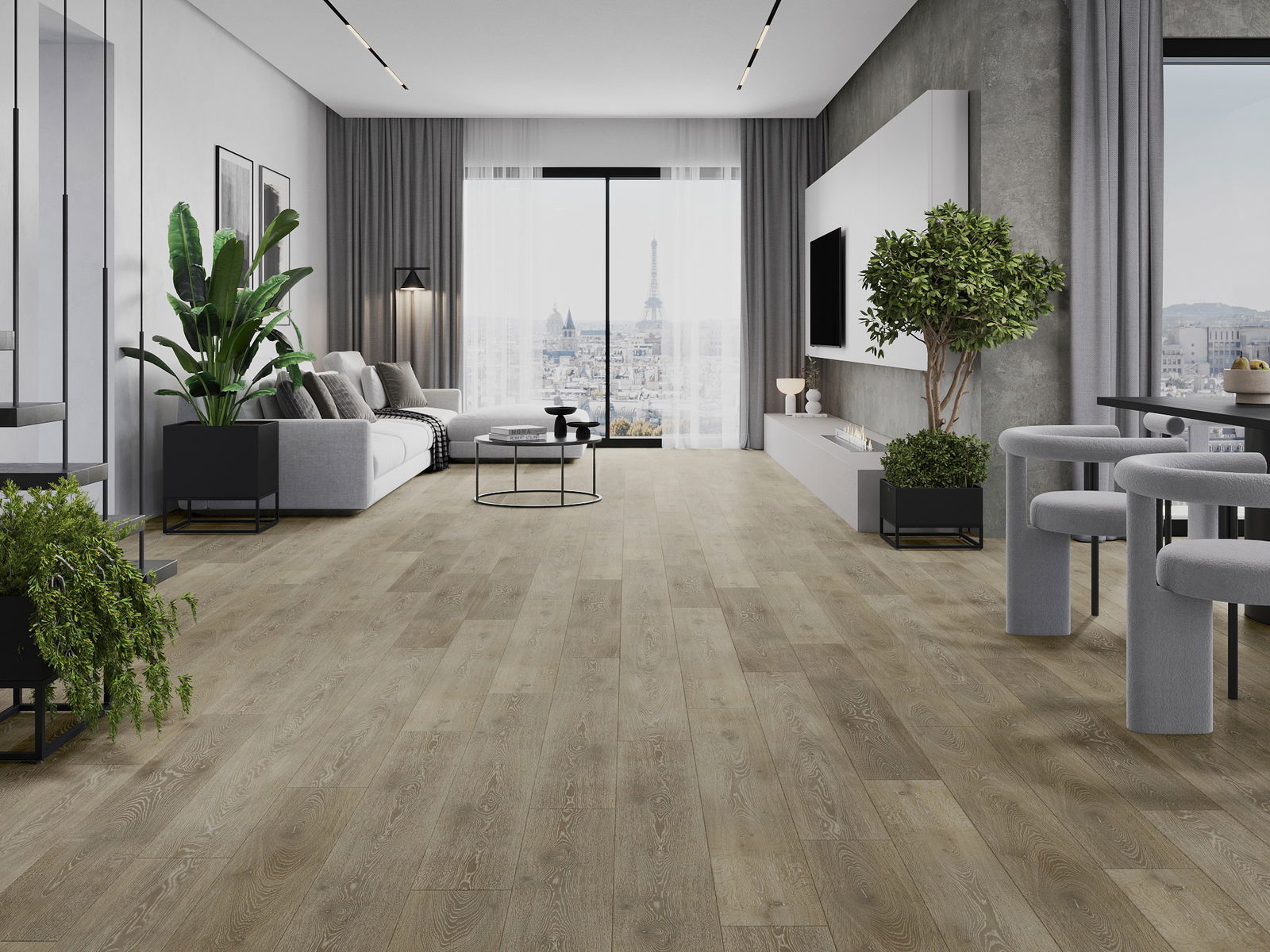 A panelek 4 oldali fugával rendelkeznek - minden oldal úgy lett kimarva, hogy összerakás után V alakú illesztés keletkezzen. Az ilyen dizájn hatására a padló kifejezettebb szerkezetet kap, ami mélységet és esztétikai jelleget ad neki. Ez a hatás különösen a modern berendezésekben értékelhető, ahol a részletek kiemelik a belső tér egyedi megjelenését.