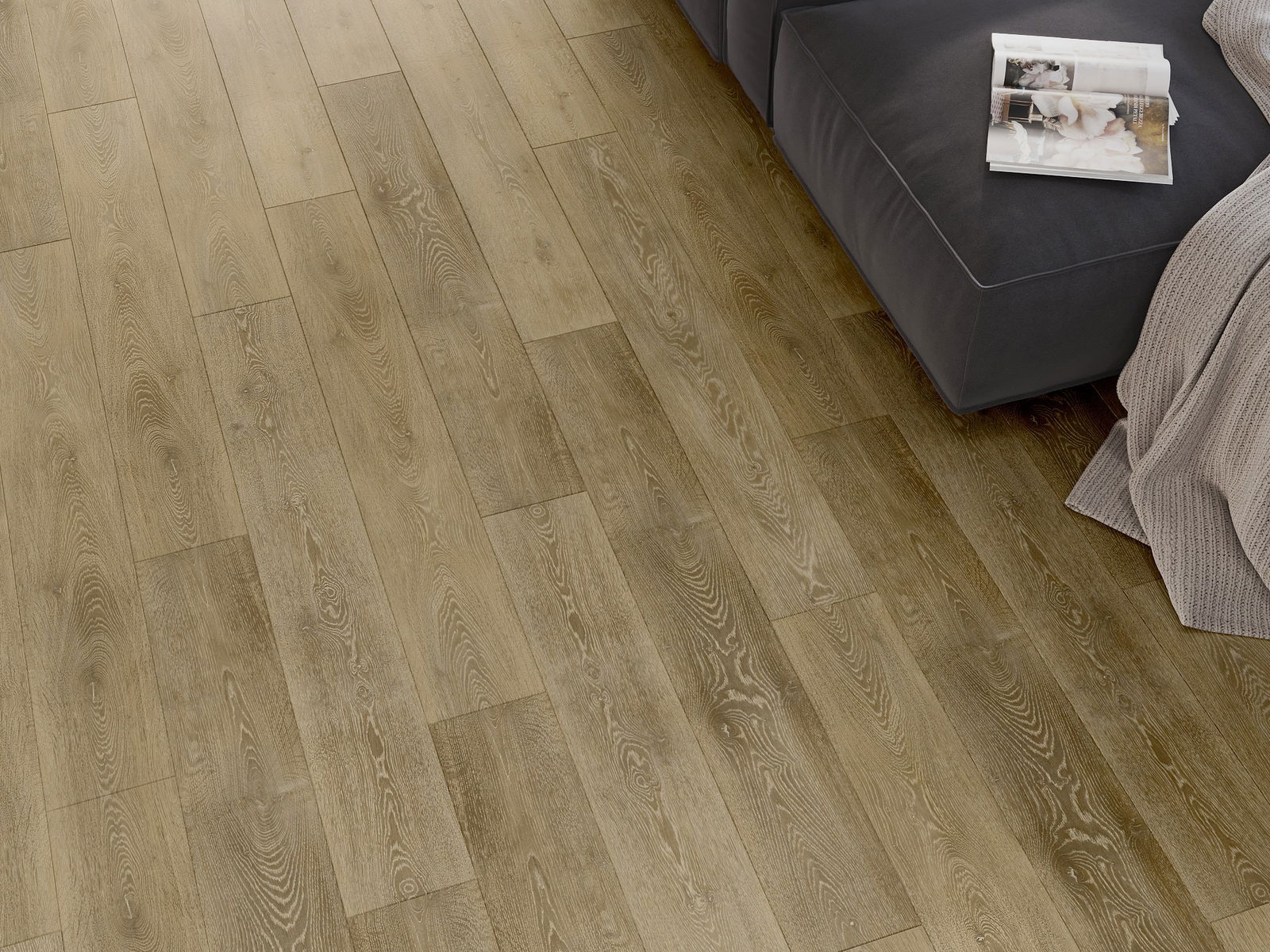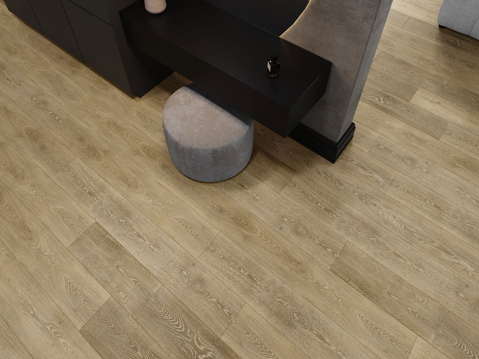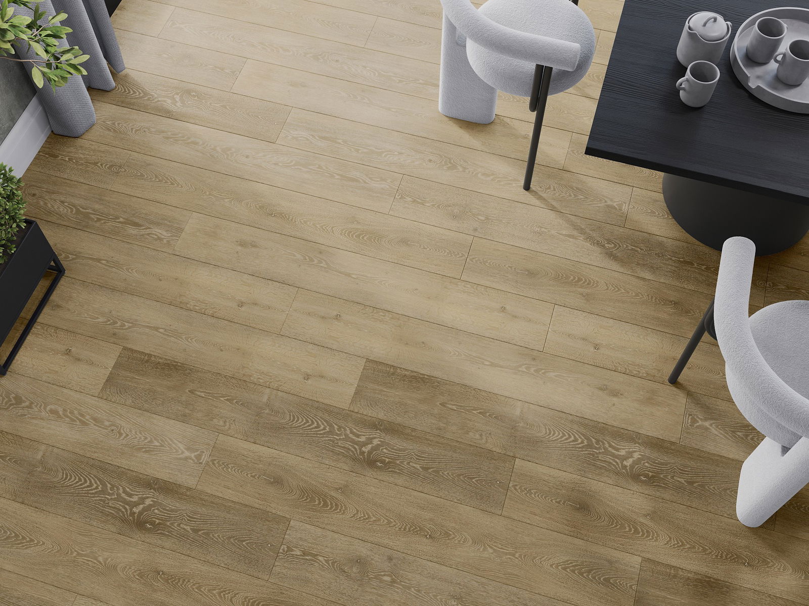 A panelek 4 oldali fugával rendelkeznek - minden oldal úgy lett kimarva, hogy összerakás után V alakú illesztés keletkezzen. Az ilyen dizájn hatására a padló kifejezettebb szerkezetet kap, ami mélységet és esztétikai jelleget ad neki. Ez a hatás különösen a modern berendezésekben értékelhető, ahol a részletek kiemelik a belső tér egyedi megjelenését.