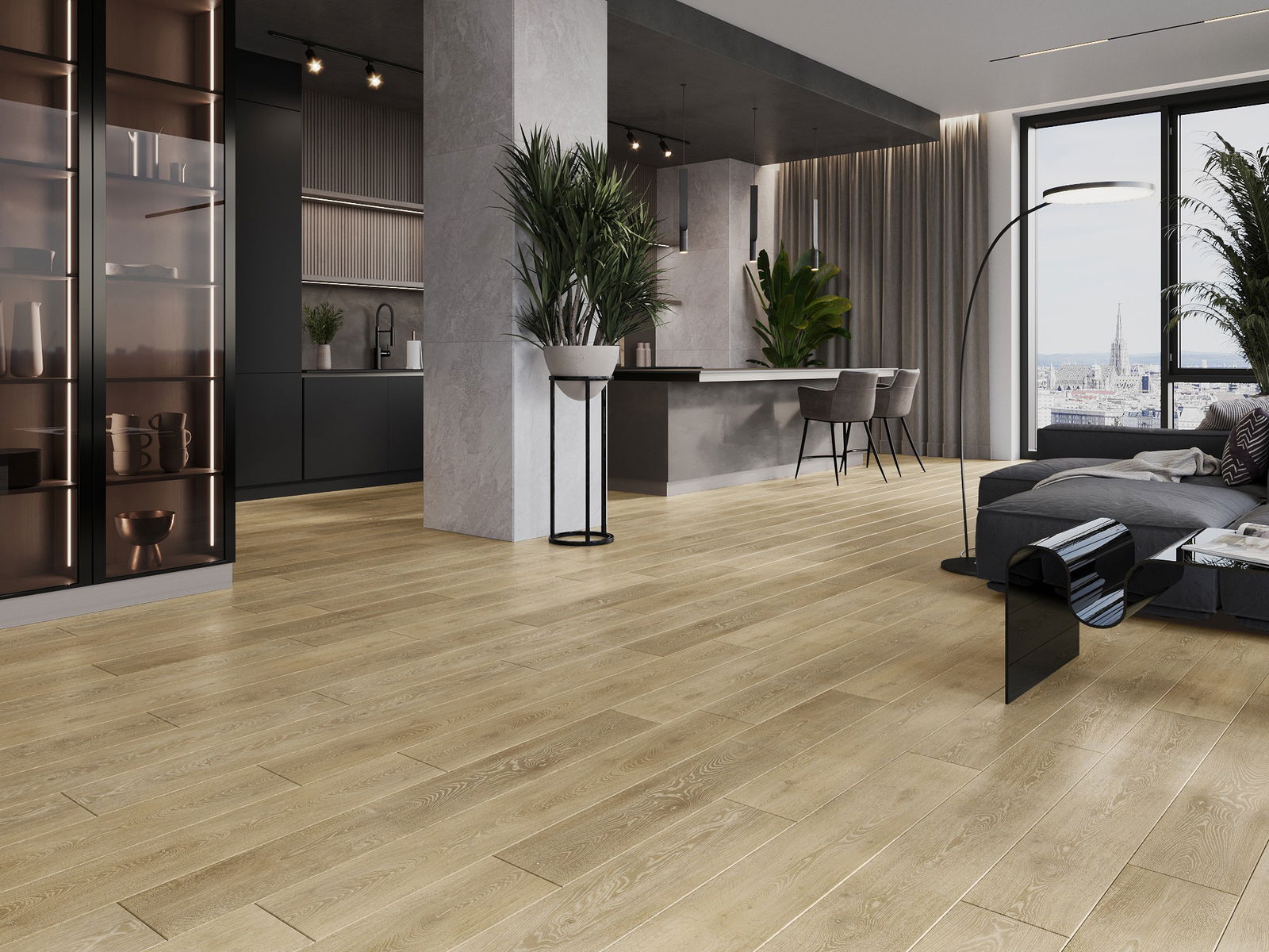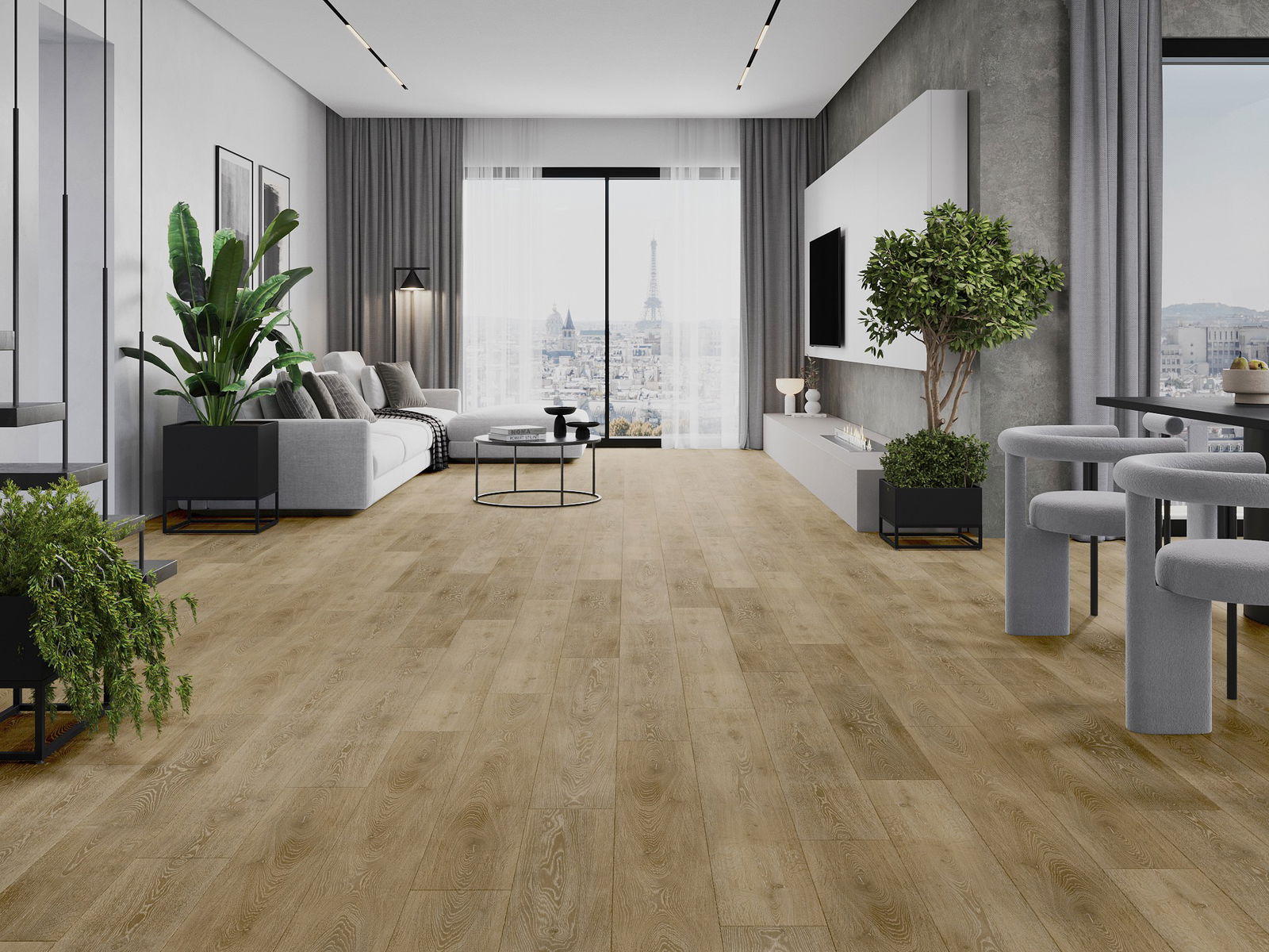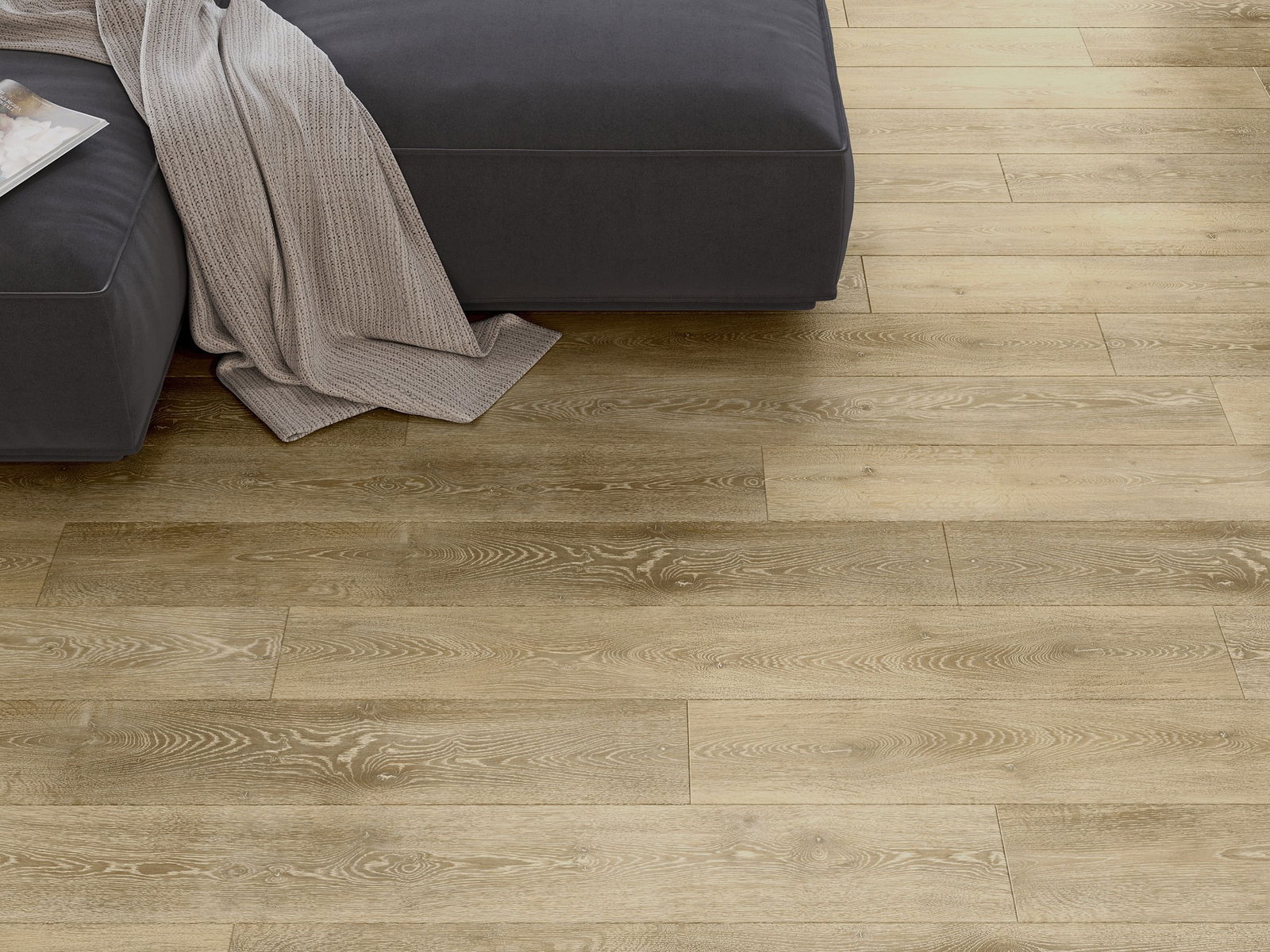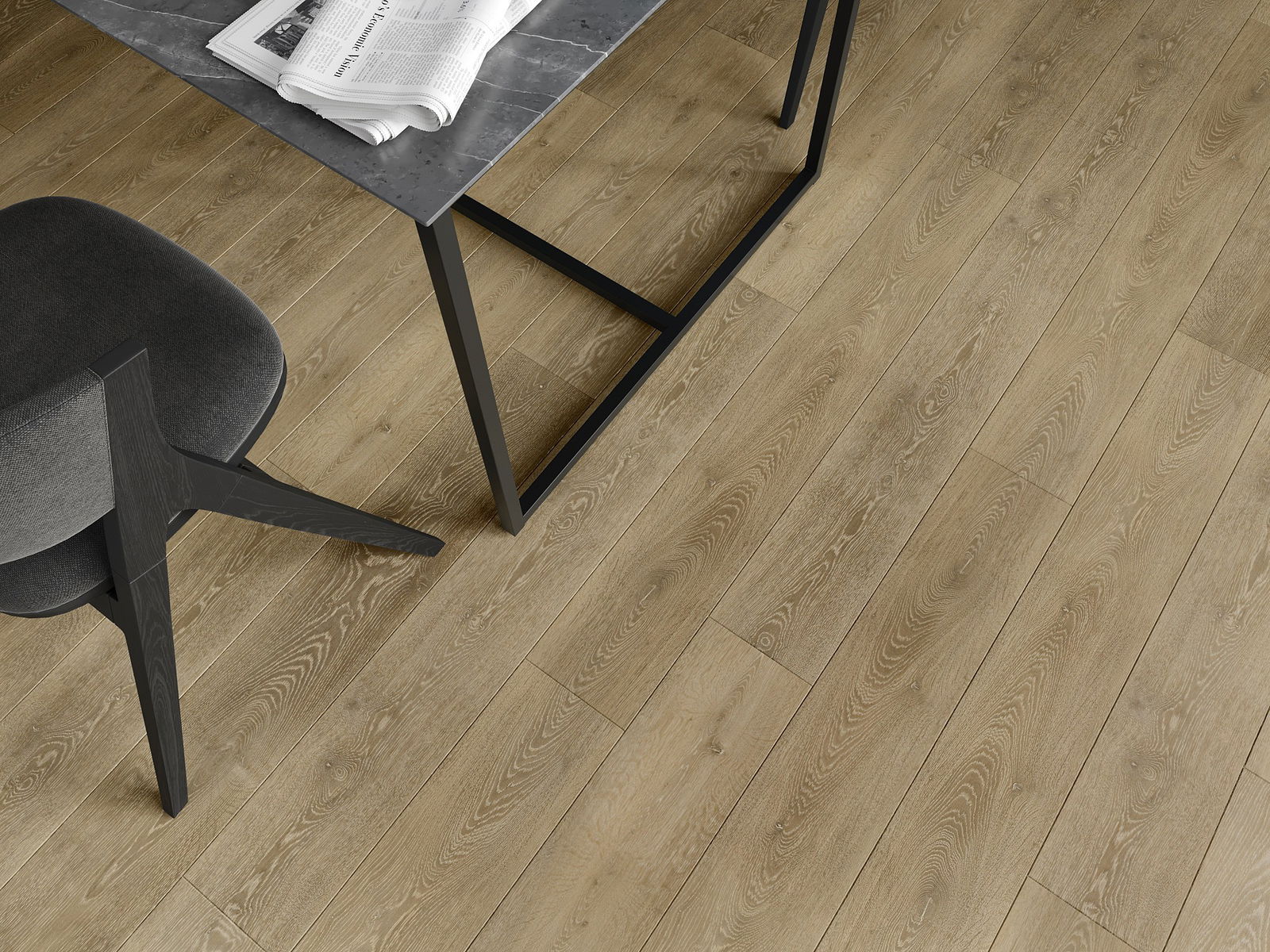 A panelek 4 oldali fugával rendelkeznek - minden oldal úgy lett kimarva, hogy összerakás után V alakú illesztés keletkezzen. Az ilyen dizájn hatására a padló kifejezettebb szerkezetet kap, ami mélységet és esztétikai jelleget ad neki. Ez a hatás különösen a modern berendezésekben értékelhető, ahol a részletek kiemelik a belső tér egyedi megjelenését.