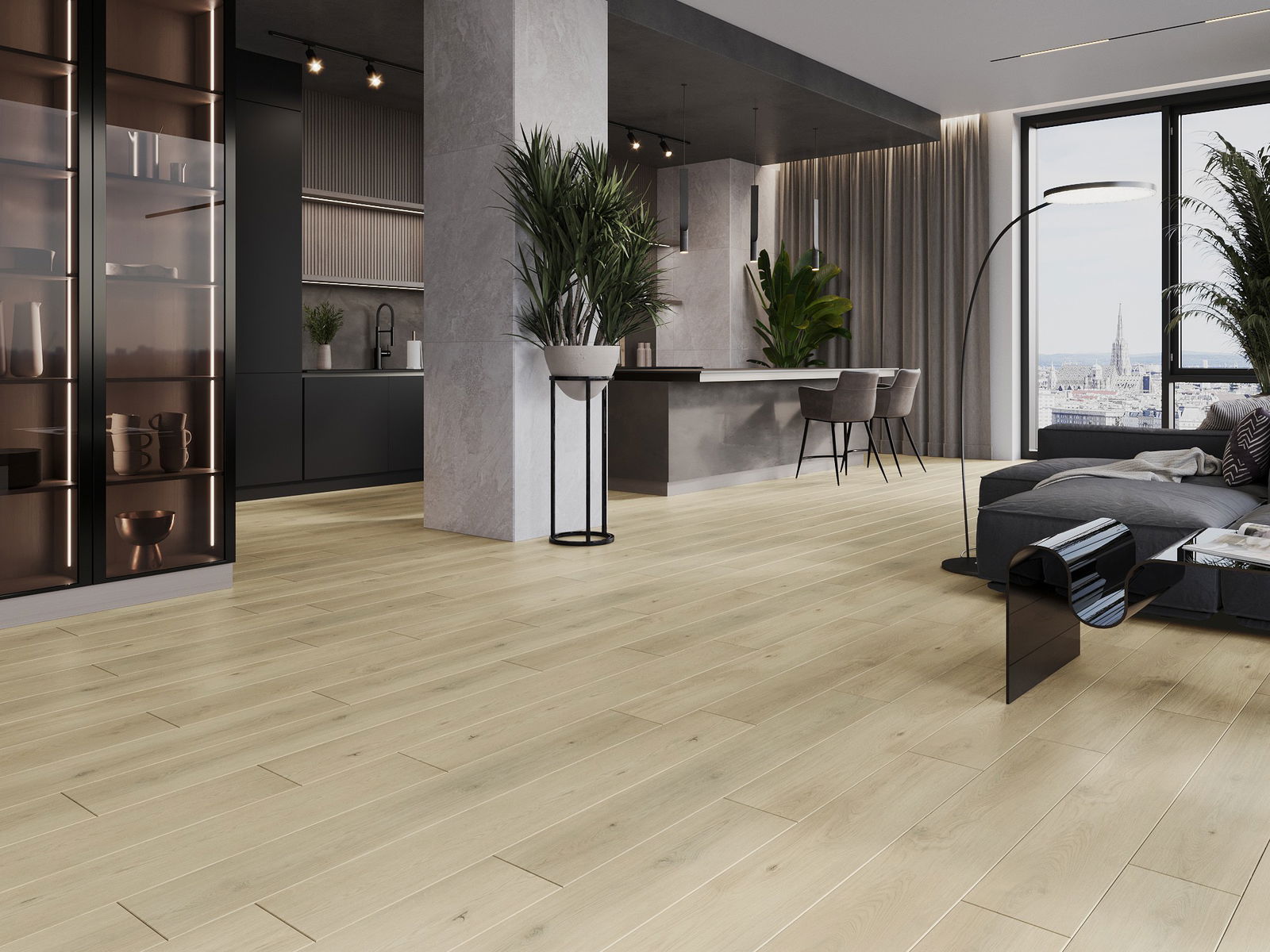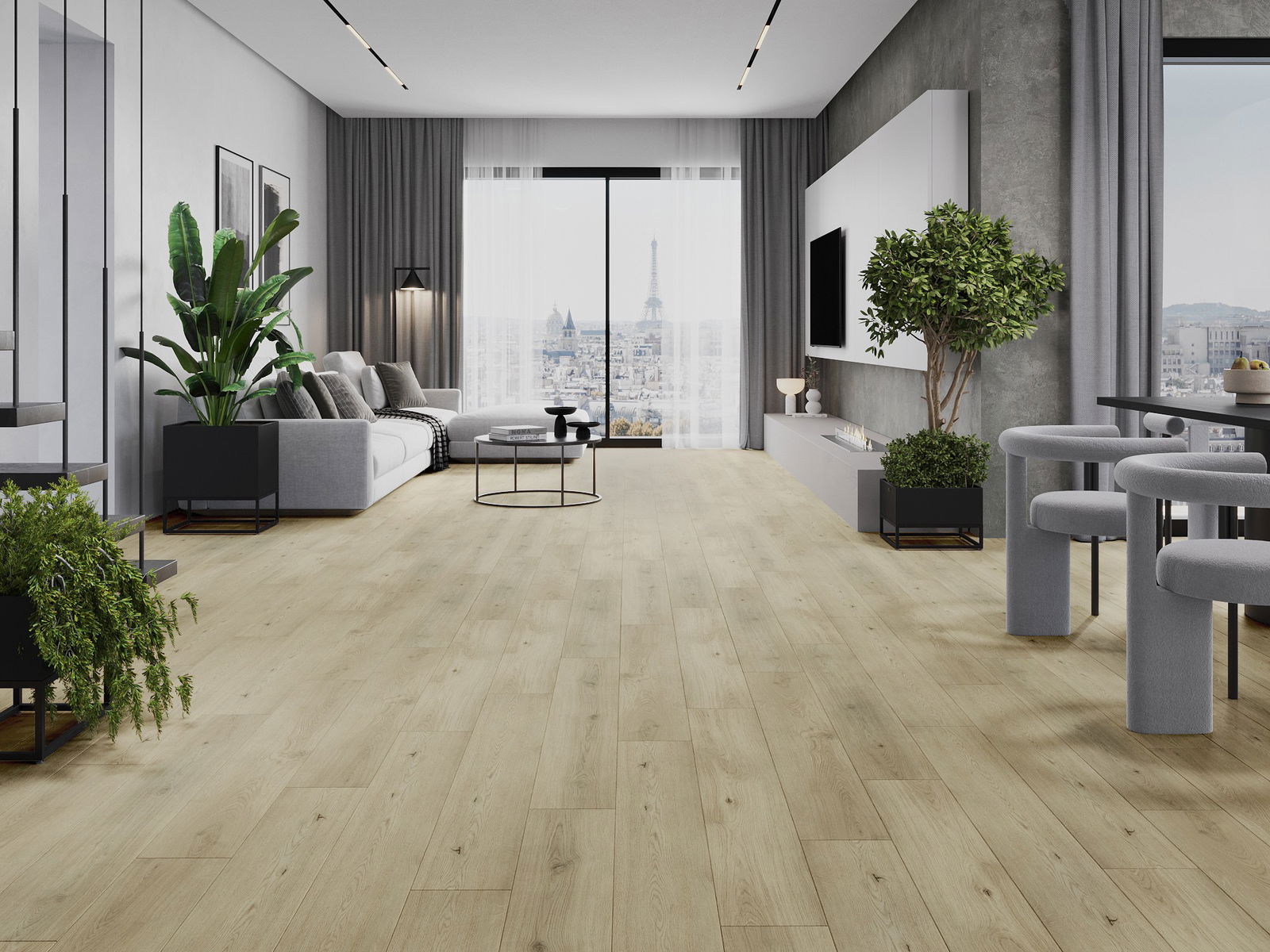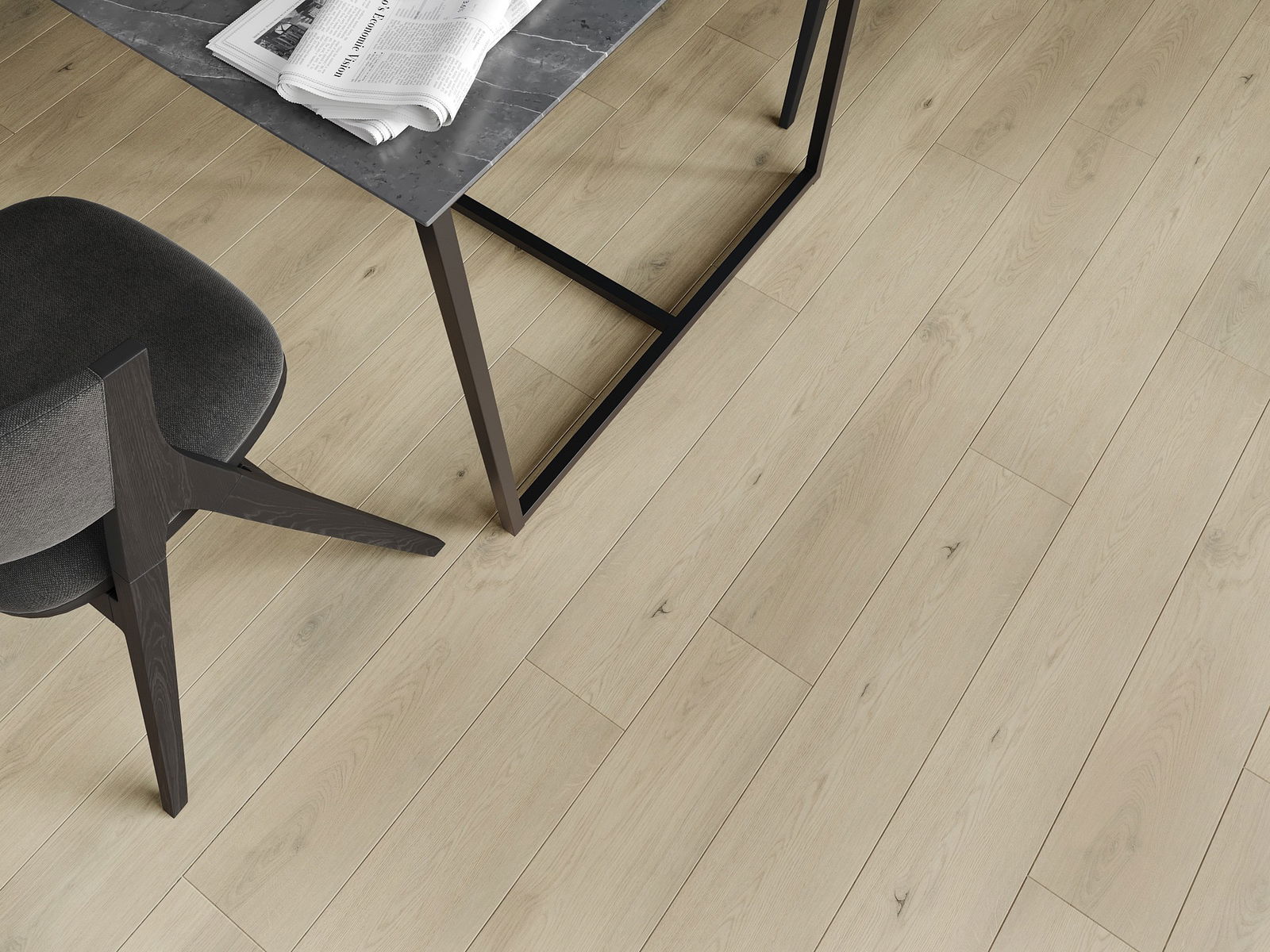 A panelek 4 oldali fugával rendelkeznek - minden oldal úgy lett kimarva, hogy összerakás után V alakú illesztés keletkezzen. Az ilyen dizájn hatására a padló kifejezettebb szerkezetet kap, ami mélységet és esztétikai jelleget ad neki. Ez a hatás különösen a modern berendezésekben értékelhető, ahol a részletek kiemelik a belső tér egyedi megjelenését.