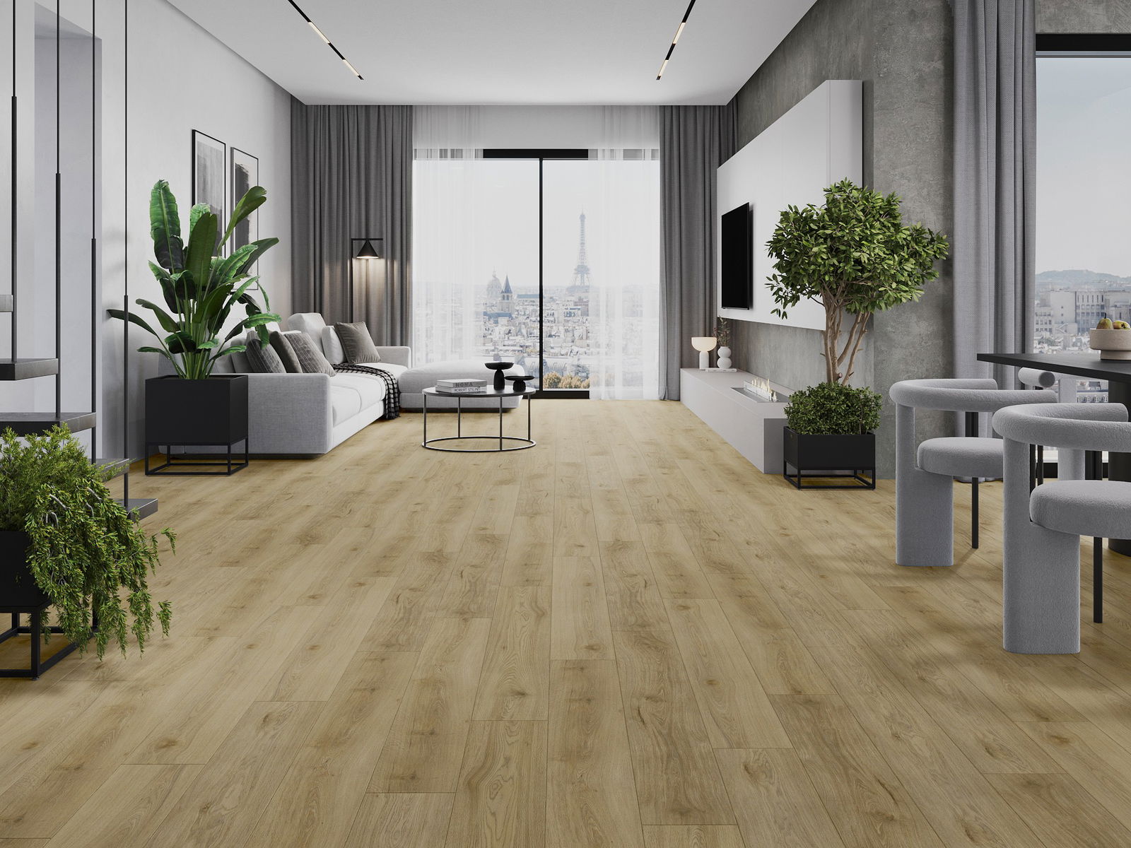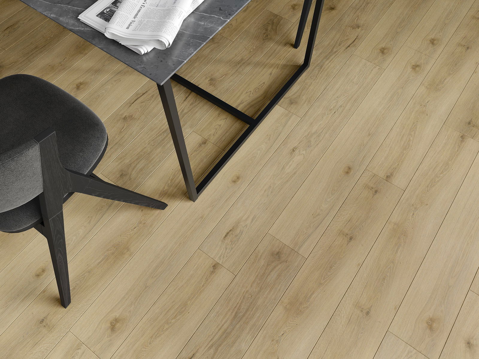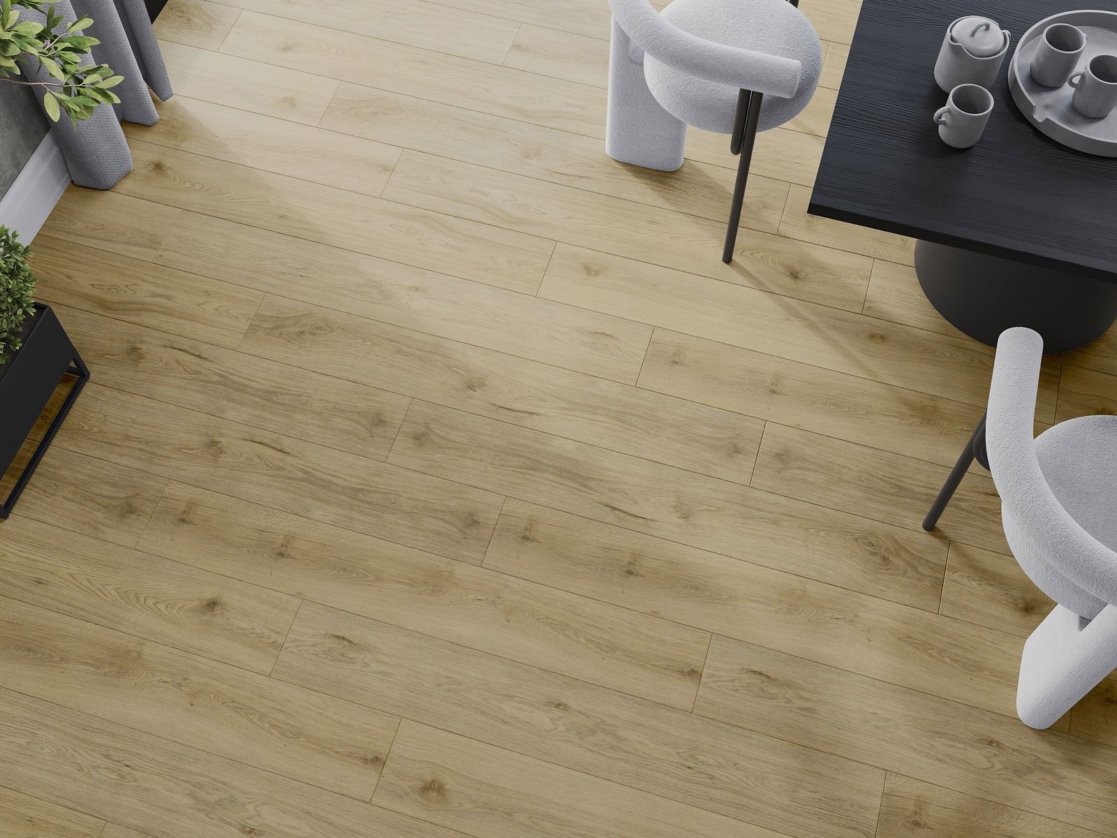 A panelek 4 oldali fugával rendelkeznek - minden oldal úgy lett kimarva, hogy összerakás után V alakú illesztés keletkezzen. Az ilyen dizájn hatására a padló kifejezettebb szerkezetet kap, ami mélységet és esztétikai jelleget ad neki. Ez a hatás különösen a modern berendezésekben értékelhető, ahol a részletek kiemelik a belső tér egyedi megjelenését.