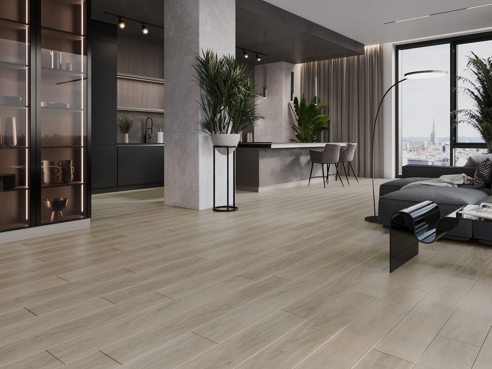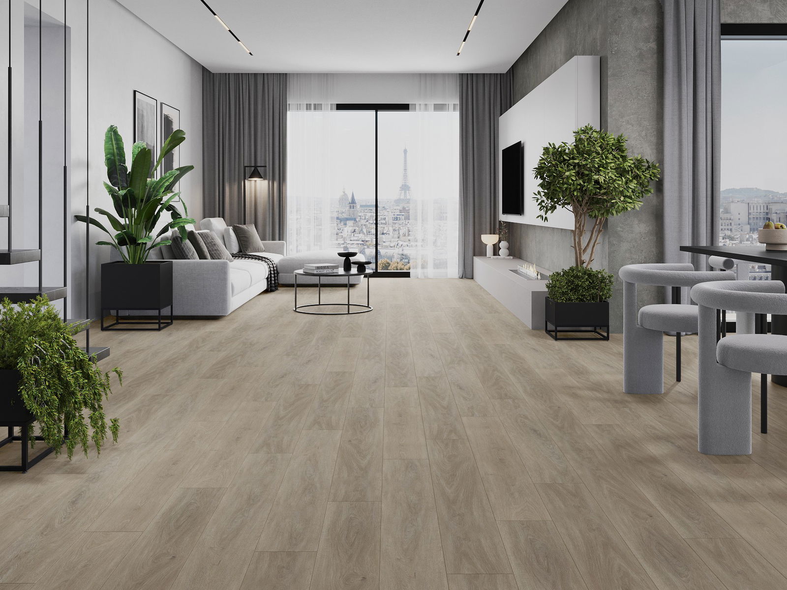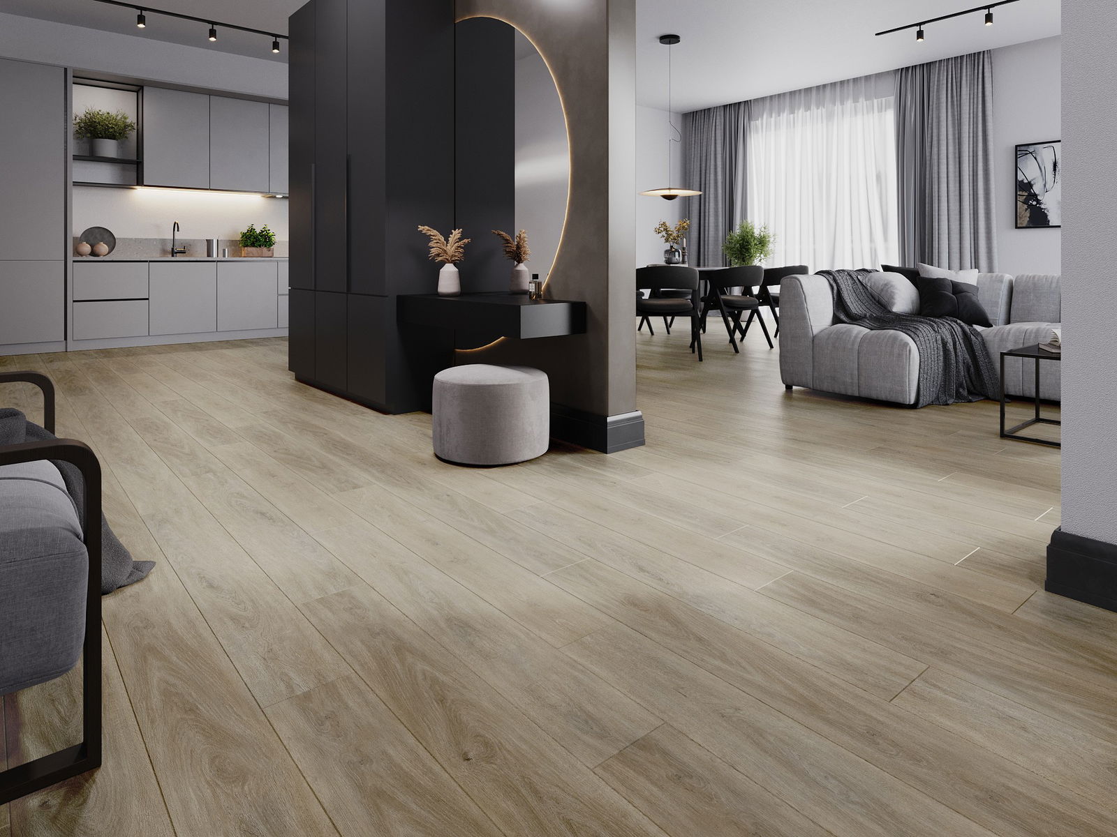 A panelek 4 oldali fugával rendelkeznek - minden oldal úgy lett kimarva, hogy összerakás után V alakú illesztés keletkezzen. Az ilyen dizájn hatására a padló kifejezettebb szerkezetet kap, ami mélységet és esztétikai jelleget ad neki. Ez a hatás különösen a modern berendezésekben értékelhető, ahol a részletek kiemelik a belső tér egyedi megjelenését.