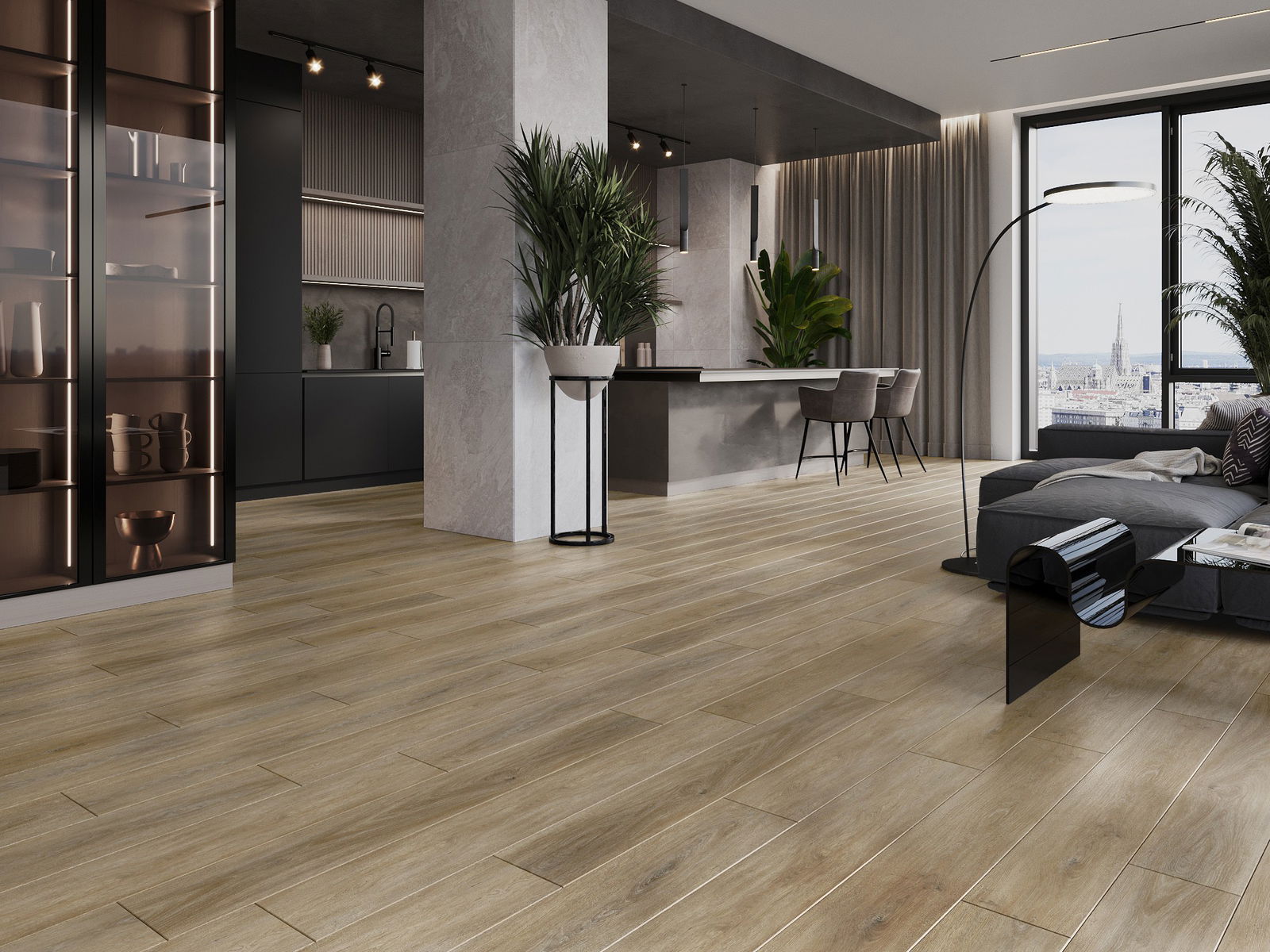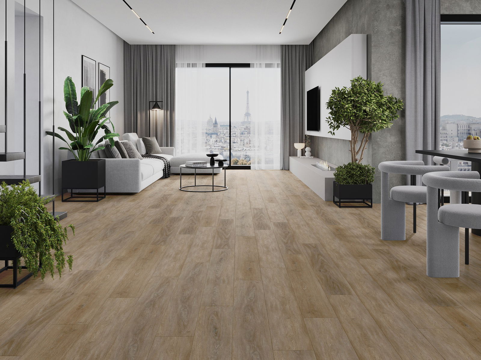 A panelek 4 oldali fugával rendelkeznek - minden oldal úgy lett kimarva, hogy összerakás után V alakú illesztés keletkezzen. Az ilyen dizájn hatására a padló kifejezettebb szerkezetet kap, ami mélységet és esztétikai jelleget ad neki. Ez a hatás különösen a modern berendezésekben értékelhető, ahol a részletek kiemelik a belső tér egyedi megjelenését.