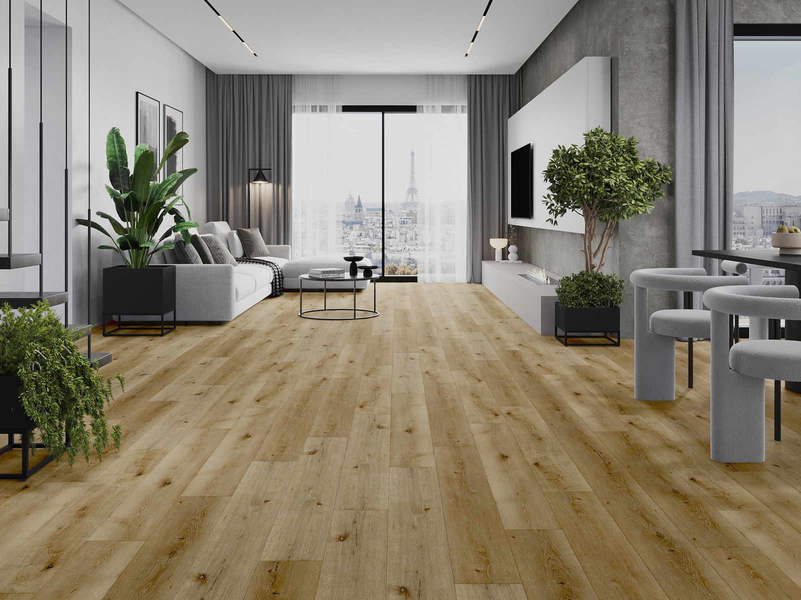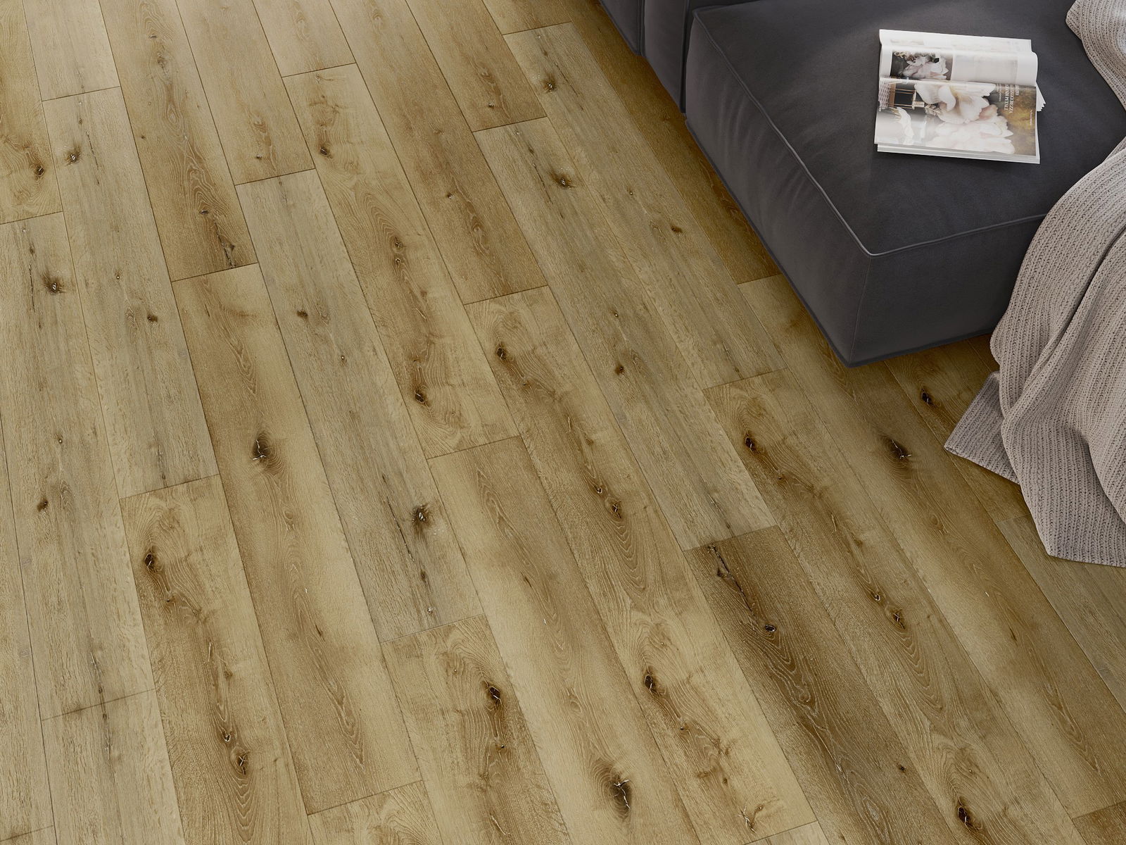 A panelek 4 oldali fugával rendelkeznek - minden oldal úgy lett kimarva, hogy összerakás után V alakú illesztés keletkezzen. Az ilyen dizájn hatására a padló kifejezettebb szerkezetet kap, ami mélységet és esztétikai jelleget ad neki. Ez a hatás különösen a modern berendezésekben értékelhető, ahol a részletek kiemelik a belső tér egyedi megjelenését.