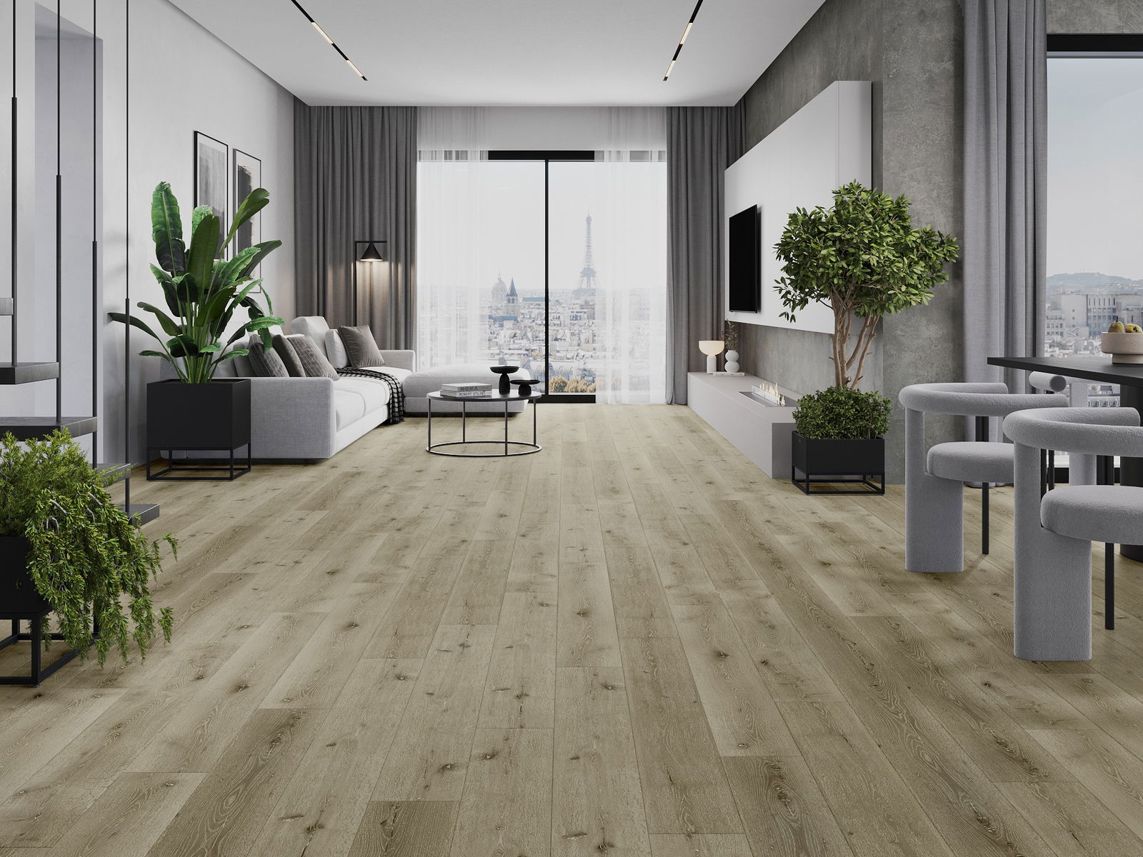 A panelek 4 oldali fugával rendelkeznek - minden oldal úgy lett kimarva, hogy összerakás után V alakú illesztés keletkezzen. Az ilyen dizájn hatására a padló kifejezettebb szerkezetet kap, ami mélységet és esztétikai jelleget ad neki. Ez a hatás különösen a modern berendezésekben értékelhető, ahol a részletek kiemelik a belső tér egyedi megjelenését.