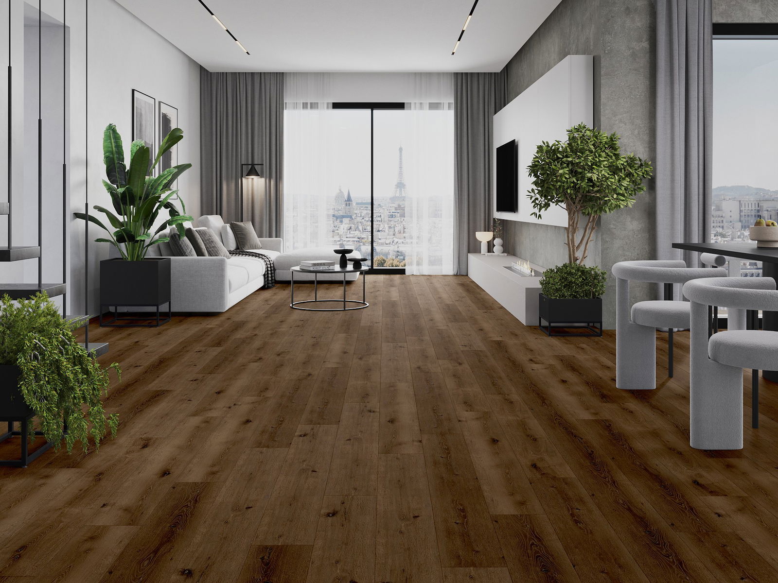 Vinilpadló mintát kínálunk, amely ideális a modern belső terekhez. A 6,5 mm-es vastagság és az 1,5 mm vastag integrált IXPE alátét kényelmet és csendes eco-szigetelést biztosít. A 32-es felhasználási osztályú vízálló panelek tartósságot és ellenállást garantálnak a mechanikai károsodásokkal és karcolásokkal szemben. A kényelmes Uniclick 2G szerelési rendszer és a 4 oldali V-fuga teljesen kiegészítik a terméket. Alacsony hőmérsékletű padlófűtéssel kompatibilisek, így minden alkalmazásban megállják a helyüket.