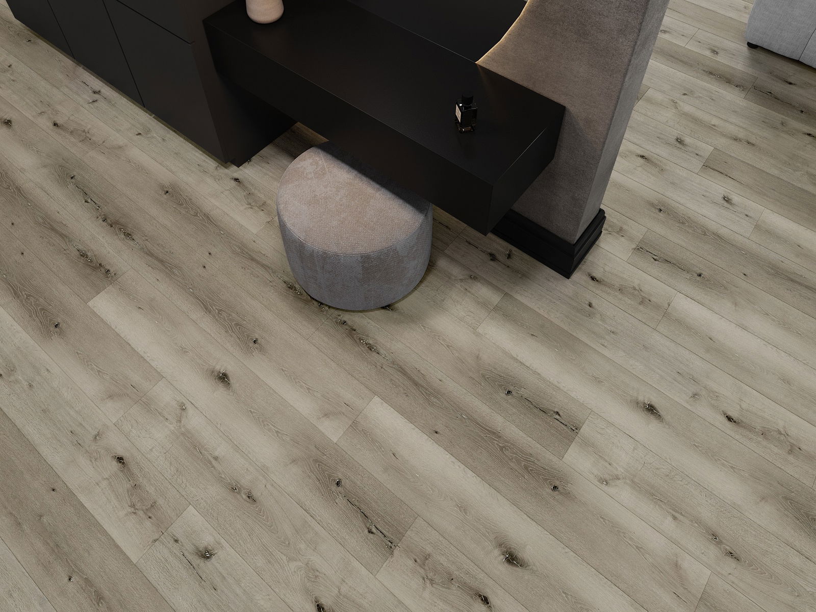 A panelek 4 oldali fugával rendelkeznek - minden oldal úgy lett kimarva, hogy összerakás után V alakú illesztés keletkezzen. Az ilyen dizájn hatására a padló kifejezettebb szerkezetet kap, ami mélységet és esztétikai jelleget ad neki. Ez a hatás különösen a modern berendezésekben értékelhető, ahol a részletek kiemelik a belső tér egyedi megjelenését.