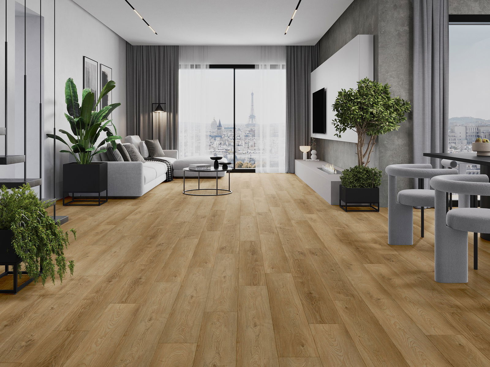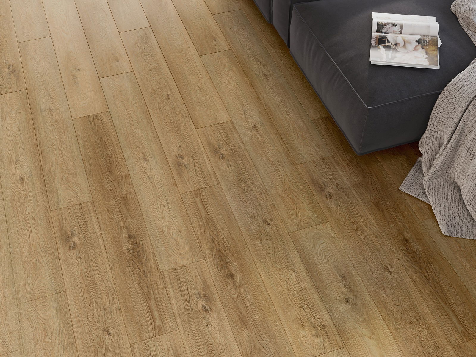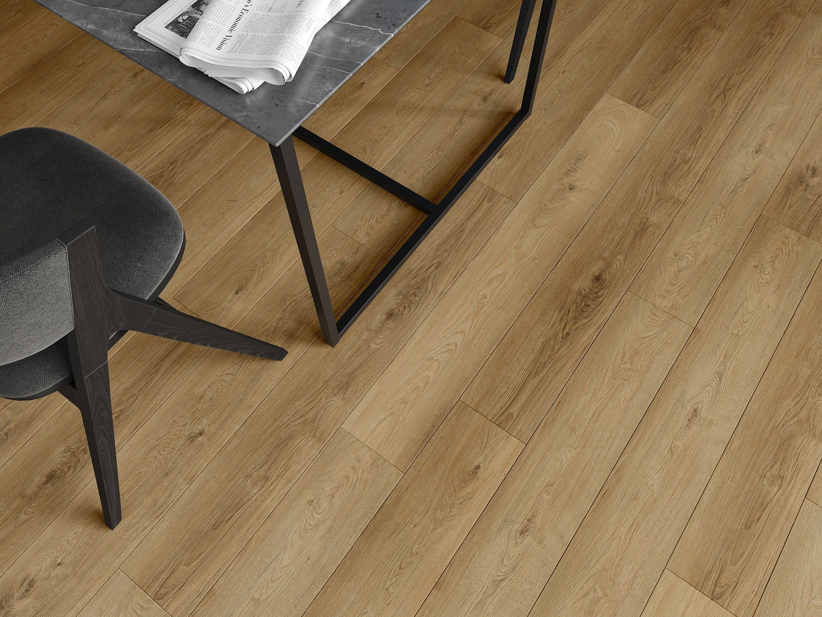 A panelek 4 oldali fugával rendelkeznek - minden oldal úgy lett kimarva, hogy összerakás után V alakú illesztés keletkezzen. Az ilyen dizájn hatására a padló kifejezettebb szerkezetet kap, ami mélységet és esztétikai jelleget ad neki. Ez a hatás különösen a modern berendezésekben értékelhető, ahol a részletek kiemelik a belső tér egyedi megjelenését.