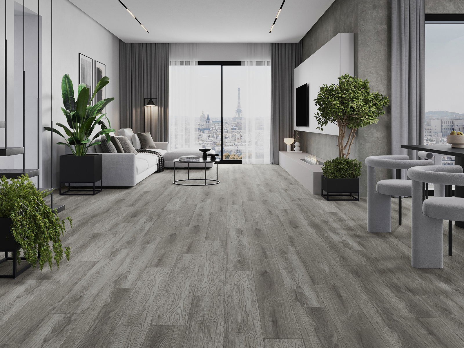 A 6,5 mm vastag, 1240 x 182 mm méretű modern vinil panel ideális megoldás belső teréhez. Az integrált IXPE alátét egyszerűvé és gyorssá teszi a szerelést, míg a 4-oldalas V-Fuga eleganciát kölcsönöz. A 100% vízállóságnak és a 32-es magas használati osztálynak köszönhetően a panel ellenáll a mechanikai sérüléseknek és karcolásoknak. Ezen felül a felület könnyen tisztítható, és az alacsony hőmérsékletű padlófűtéssel való kompaktibilitás praktikussá teszi.