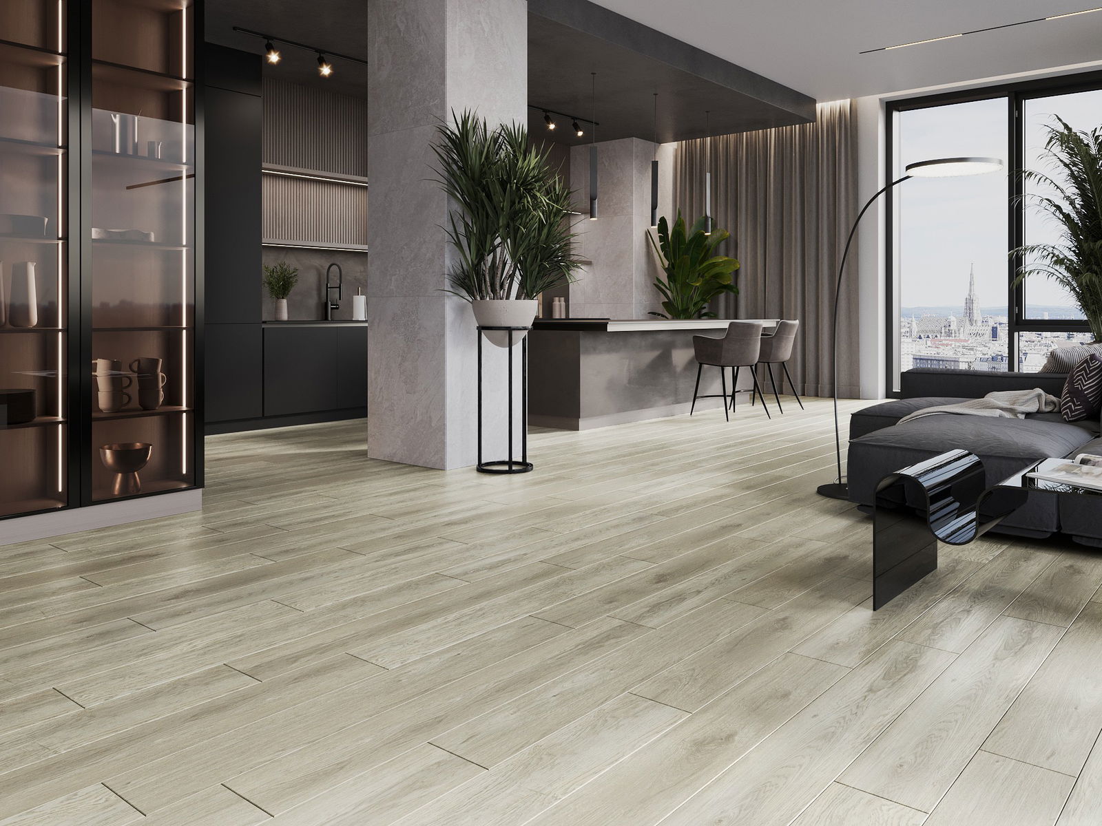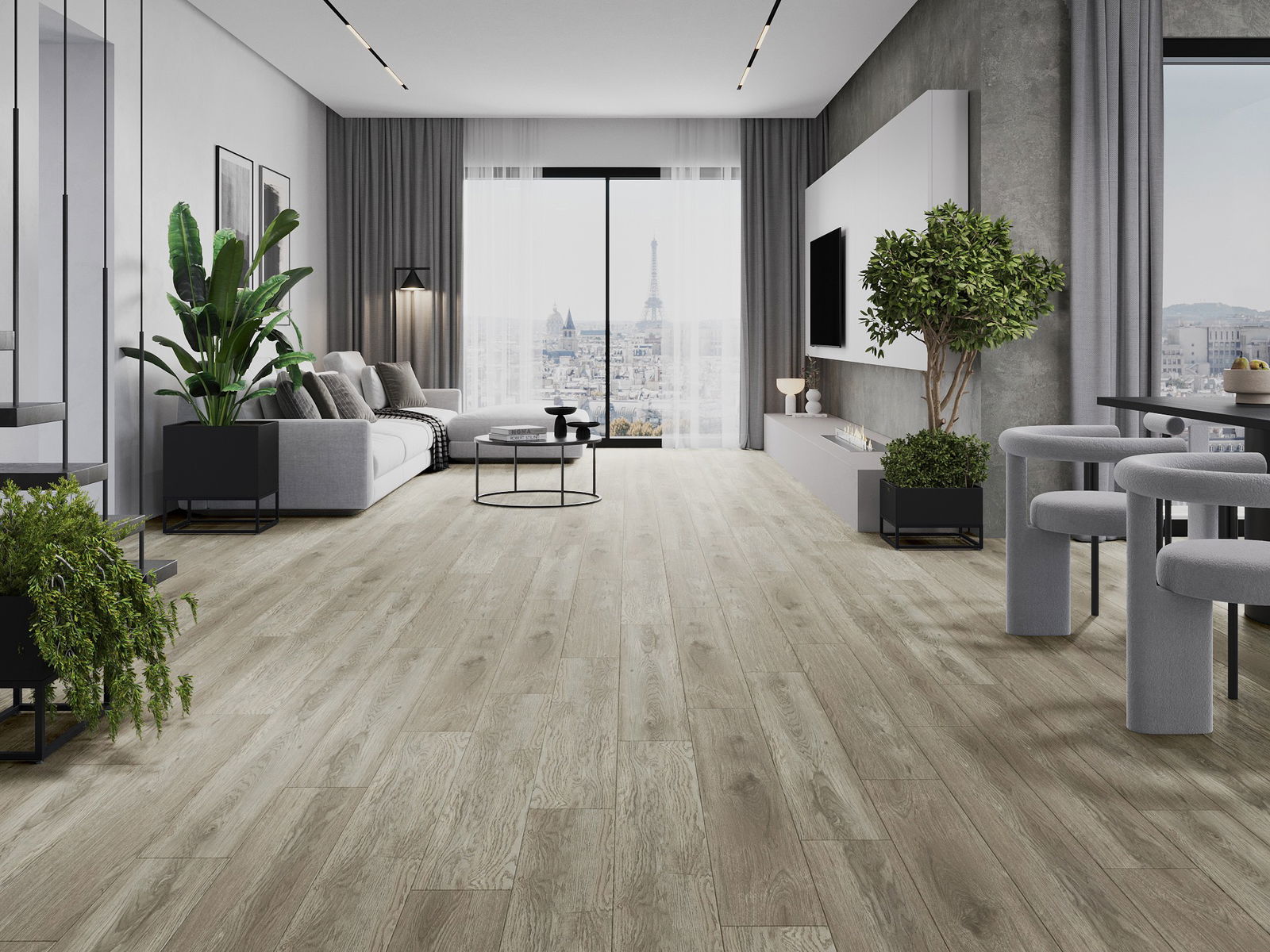 A panelek 4 oldali fugával rendelkeznek - minden oldal úgy lett kimarva, hogy összerakás után V alakú illesztés keletkezzen. Az ilyen dizájn hatására a padló kifejezettebb szerkezetet kap, ami mélységet és esztétikai jelleget ad neki. Ez a hatás különösen a modern berendezésekben értékelhető, ahol a részletek kiemelik a belső tér egyedi megjelenését.