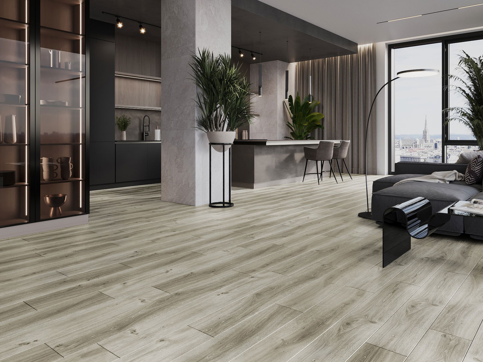 A panelek 4 oldali fugával rendelkeznek - minden oldal úgy lett kimarva, hogy összerakás után V alakú illesztés keletkezzen. Az ilyen dizájn hatására a padló kifejezettebb szerkezetet kap, ami mélységet és esztétikai jelleget ad neki. Ez a hatás különösen a modern berendezésekben értékelhető, ahol a részletek kiemelik a belső tér egyedi megjelenését.