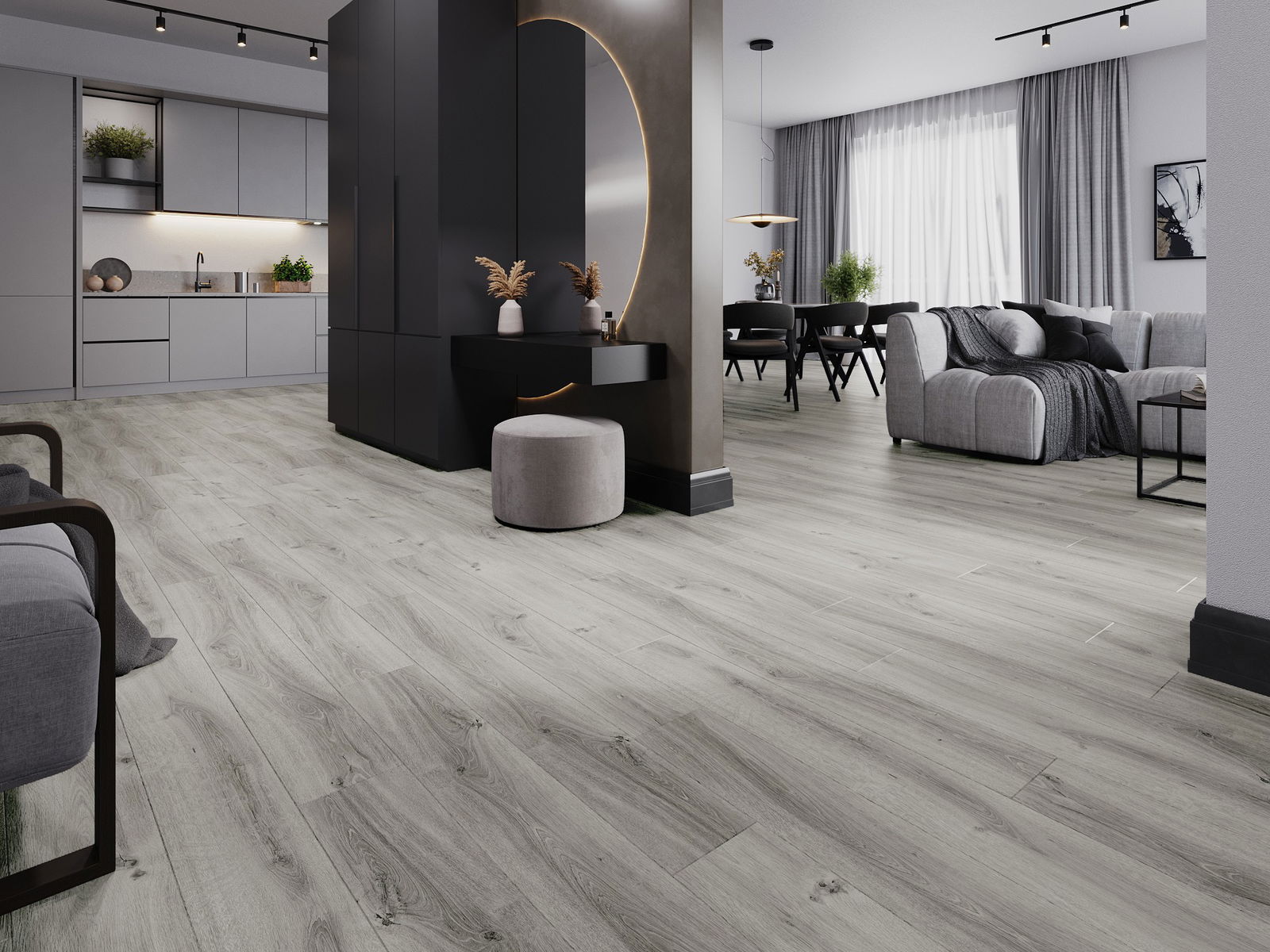 A panelek 4 oldali fugával rendelkeznek - minden oldal úgy lett kimarva, hogy összerakás után V alakú illesztés keletkezzen. Az ilyen dizájn hatására a padló kifejezettebb szerkezetet kap, ami mélységet és esztétikai jelleget ad neki. Ez a hatás különösen a modern berendezésekben értékelhető, ahol a részletek kiemelik a belső tér egyedi megjelenését.
