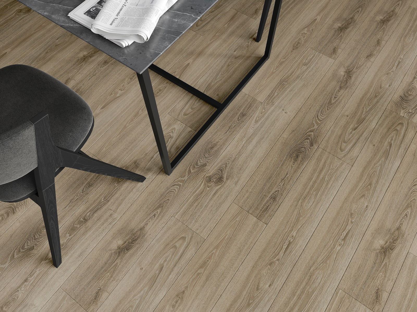 A panelek 4 oldali fugával rendelkeznek - minden oldal úgy lett kimarva, hogy összerakás után V alakú illesztés keletkezzen. Az ilyen dizájn hatására a padló kifejezettebb szerkezetet kap, ami mélységet és esztétikai jelleget ad neki. Ez a hatás különösen a modern berendezésekben értékelhető, ahol a részletek kiemelik a belső tér egyedi megjelenését.