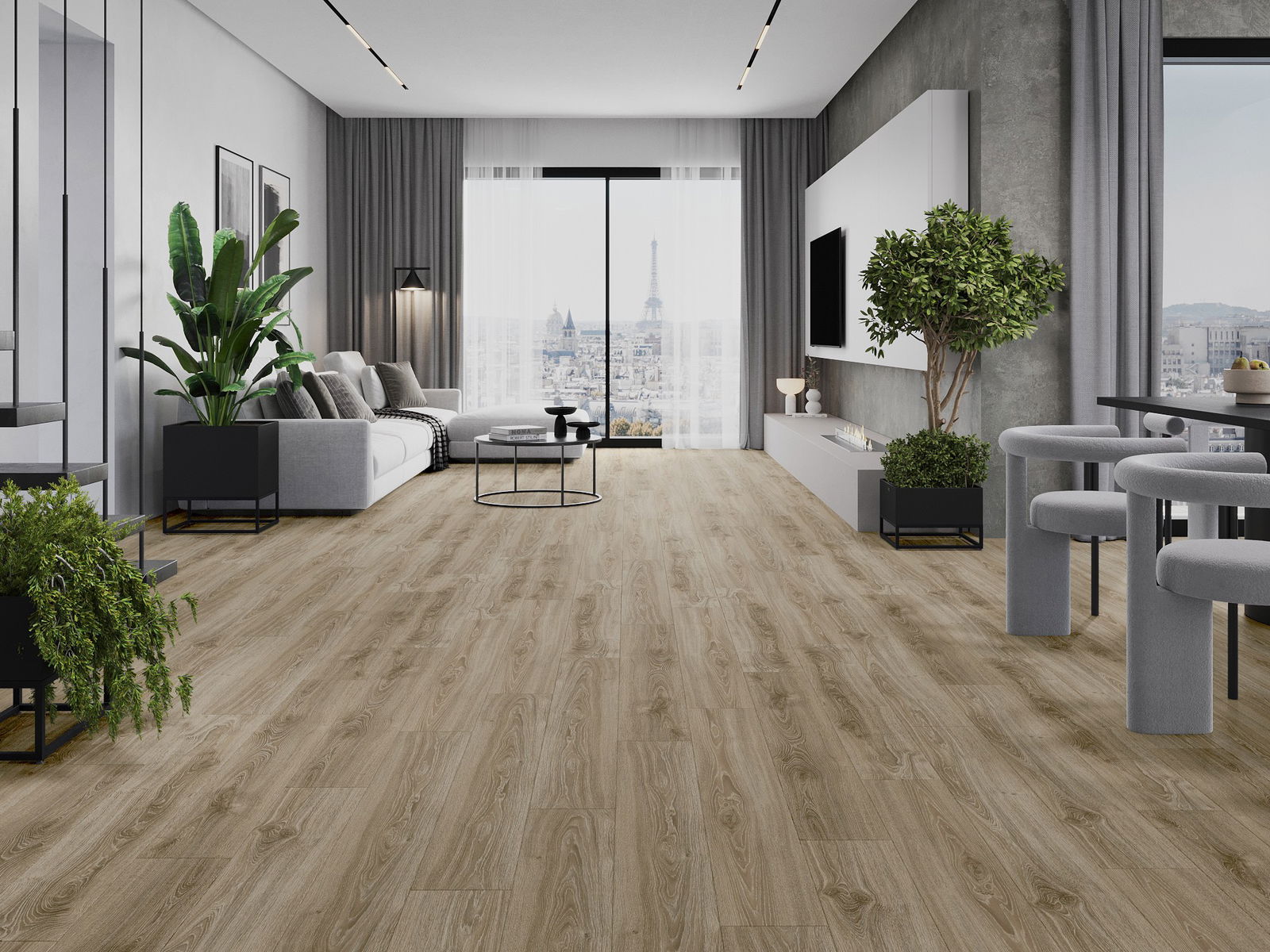 A vinyl panel kiváló tartóssággal és esztétikával rendelkezik a polimer-kő kompozit használatának köszönhetően. Vastagsága 6,5 mm, a felülete pedig karcálló és könnyen tisztítható. Ezen felül a 100% vízállóság és az integrált IXPE alátét kényelmes használatot biztosítanak. Az Uniclick 2G szerelési rendszer és a DS csúszásgátló osztály miatt a termék biztonságos és egyszerűen telepíthető. Ideális minden belső térbe, amely eleganciát és funkcionalitást köt össze.