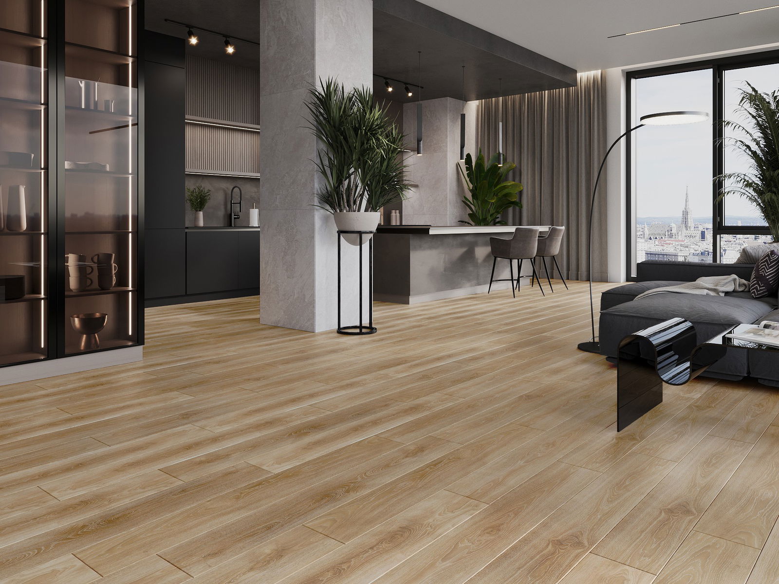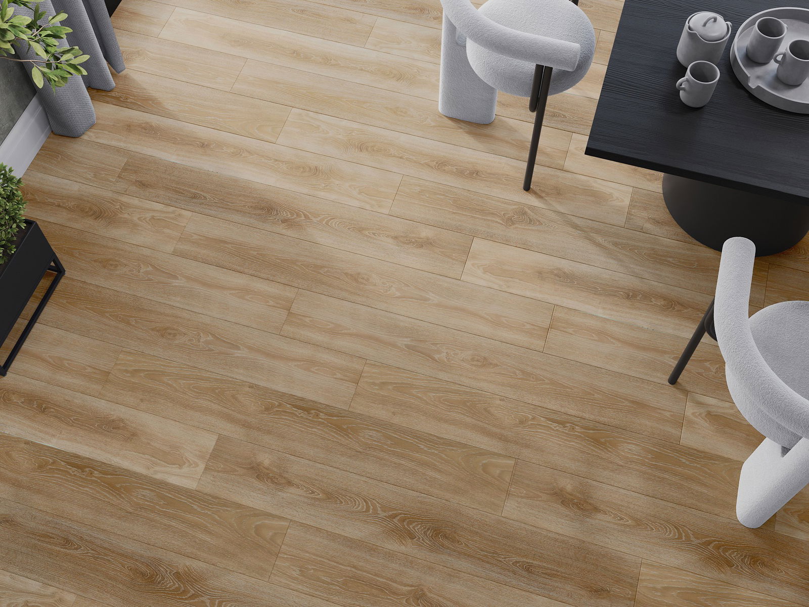 A panelek 4 oldali fugával rendelkeznek - minden oldal úgy lett kimarva, hogy összerakás után V alakú illesztés keletkezzen. Az ilyen dizájn hatására a padló kifejezettebb szerkezetet kap, ami mélységet és esztétikai jelleget ad neki. Ez a hatás különösen a modern berendezésekben értékelhető, ahol a részletek kiemelik a belső tér egyedi megjelenését.