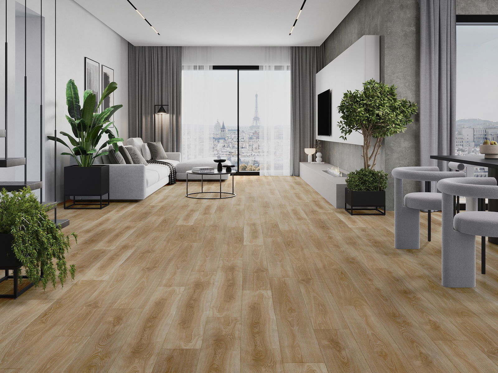A vinil panelek 6,5 mm-es vastagságának és 100%-os vízállóságának köszönhetően a padló tartós és könnyen karbantartható lesz. Az integrált IXPE alátét 1,5 mm vastagsága és az Uniclick 2G egyedi szerelési módja kényelmet biztosít a telepítés során. A 32-es felhasználási osztály és a mechanikai sérülésekkel szembeni ellenállás ideálissá teszi a terméket intenzíven használt helyiségekbe. Emellett a csúszásgátló felület és a 4-oldali V-fuga esztétikát és kényelmet ad a használathoz.