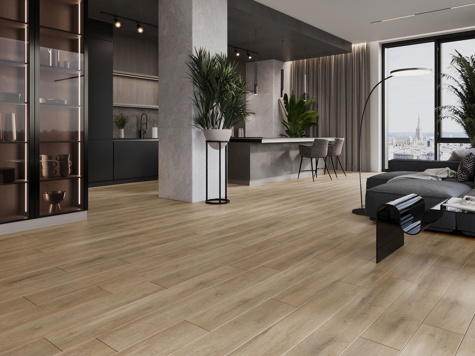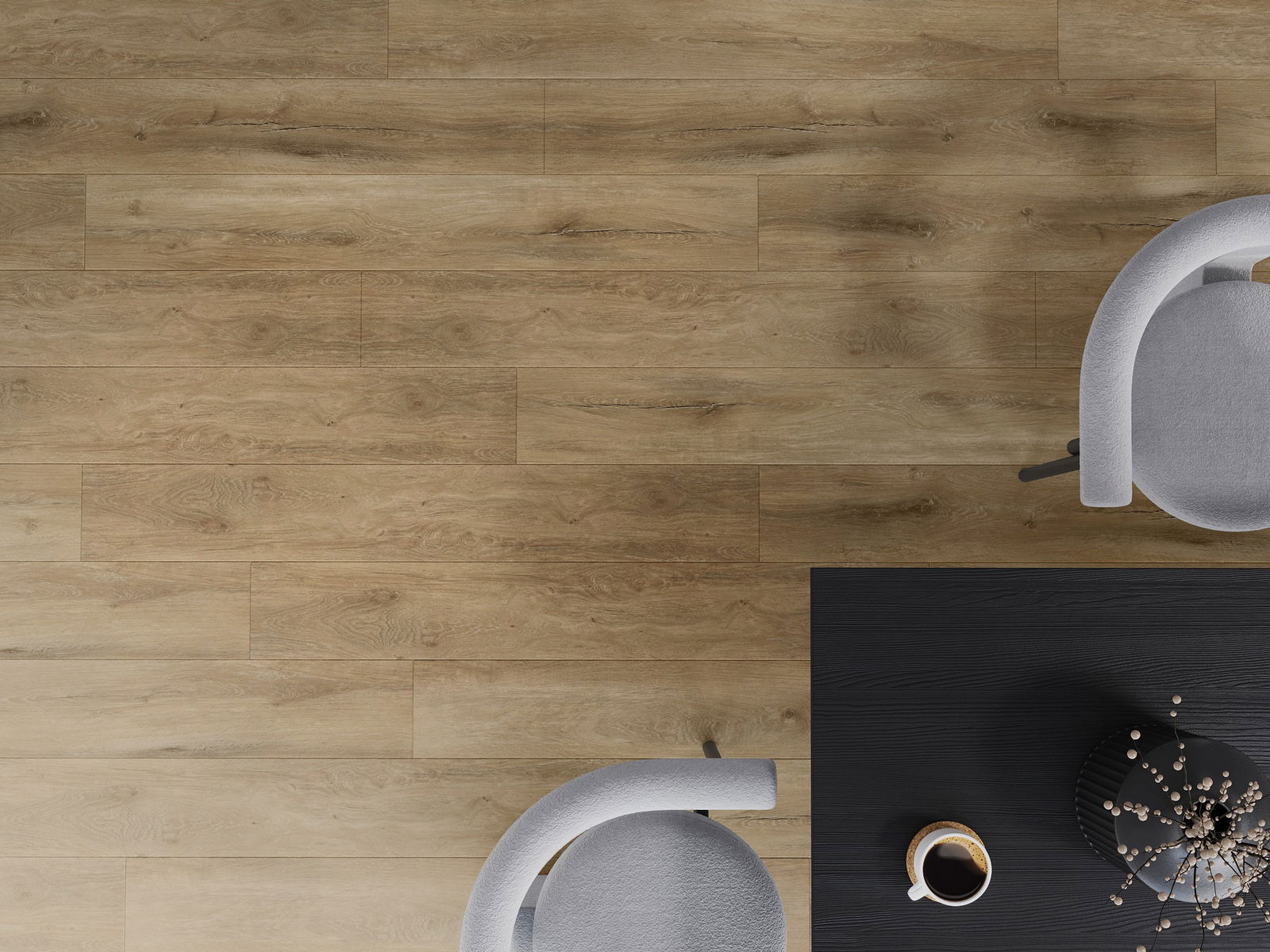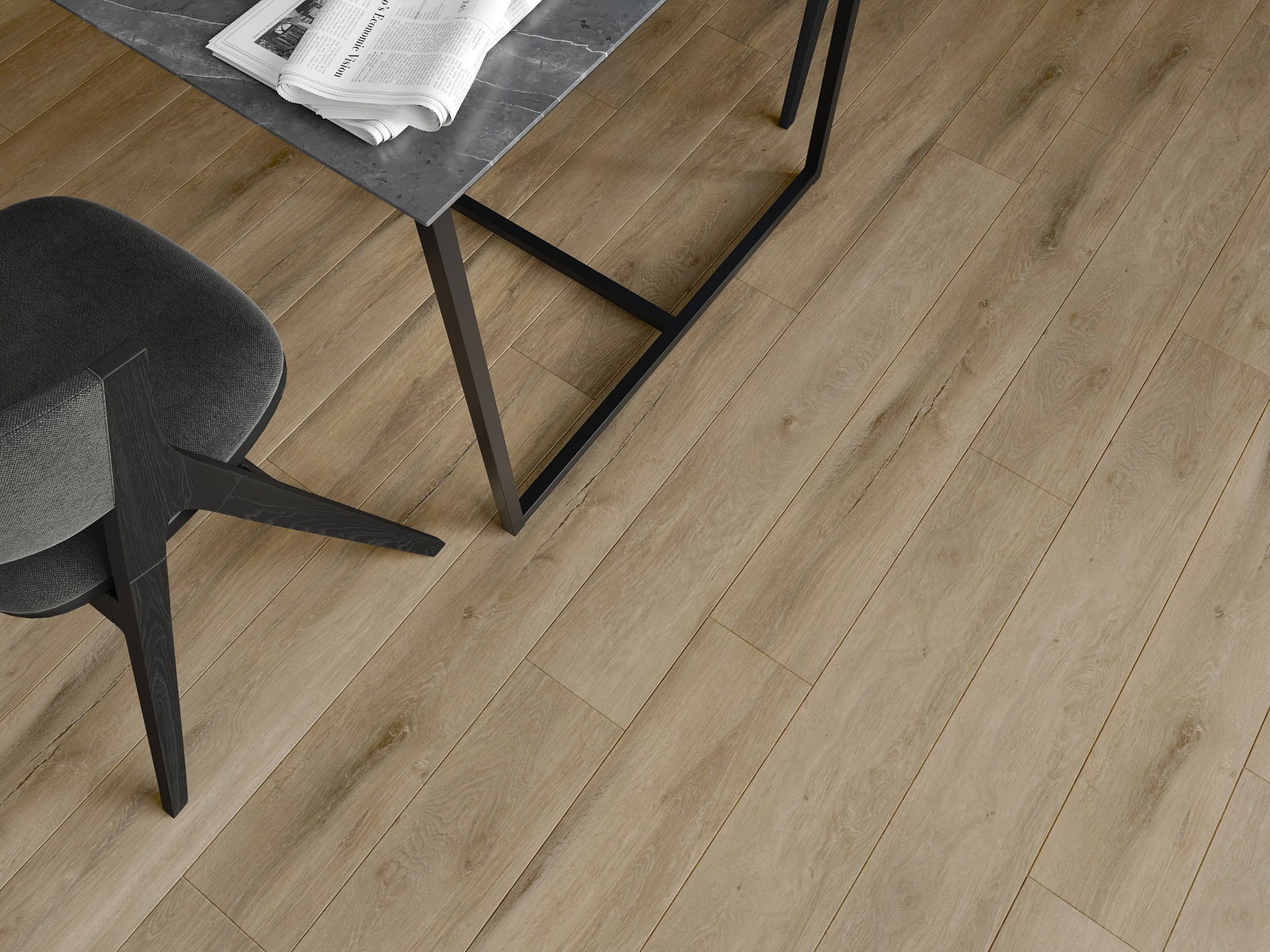 A panelek 4 oldali fugával rendelkeznek - minden oldal úgy lett kimarva, hogy összerakás után V alakú illesztés keletkezzen. Az ilyen dizájn hatására a padló kifejezettebb szerkezetet kap, ami mélységet és esztétikai jelleget ad neki. Ez a hatás különösen a modern berendezésekben értékelhető, ahol a részletek kiemelik a belső tér egyedi megjelenését.