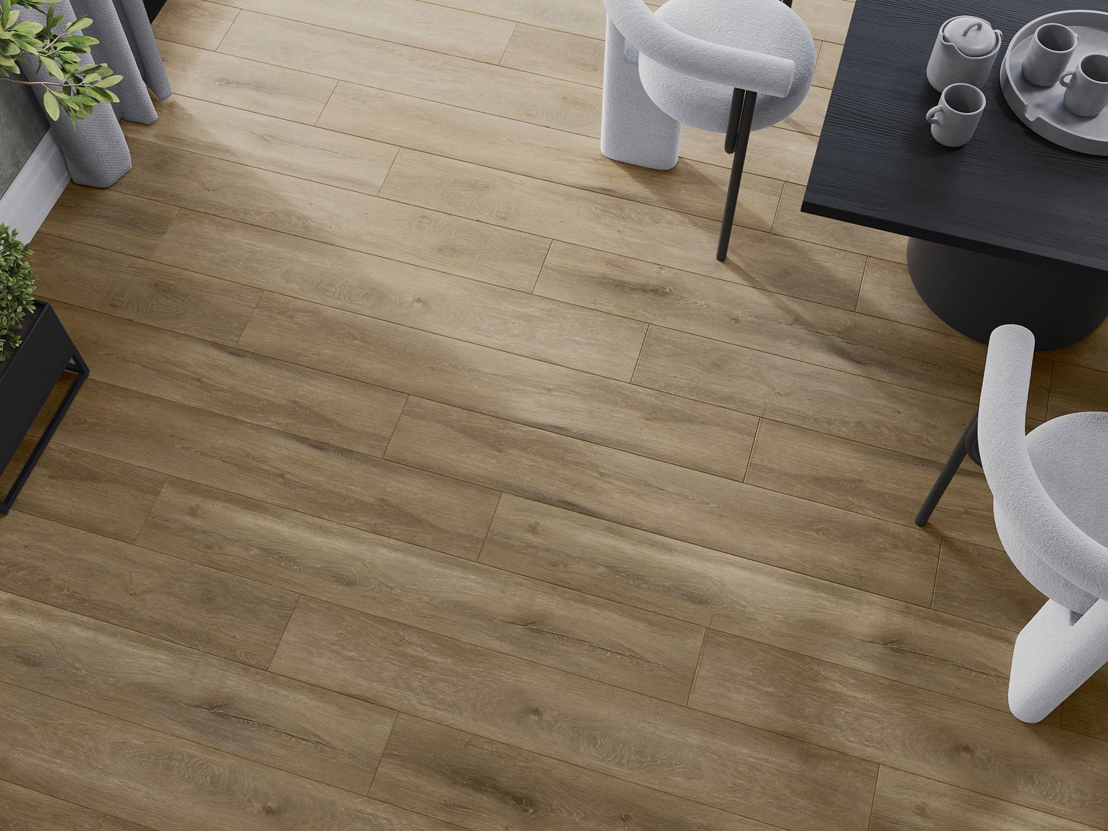 A Mexen Long Creek tökéletes választás mindenkinek, aki kiváló minőségű vinil panelekre vágyik. A 6,5 mm-es vastagság és 100% vízállóság miatt ideális különböző belterekhez. Az 1,5 mm-es integrált IXPE alátét akusztikai komfortot biztosít, a négyoldalas V-Fuga pedig modern megjelenést kölcsönöz. Magas ellenálló képessége a karcolásokkal és mechanikai sérülésekkel szemben hosszú távú befektetéssé teszi. Tökéletes az alacsony hőmérsékletű padlófűtés mellett, így praktikus megoldás minden otthonban.