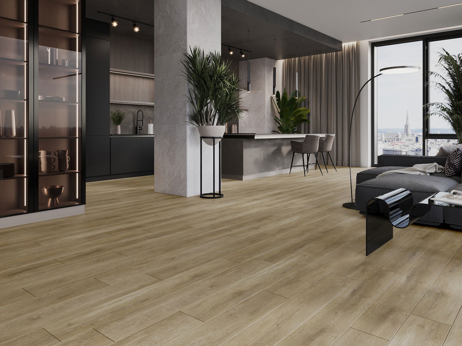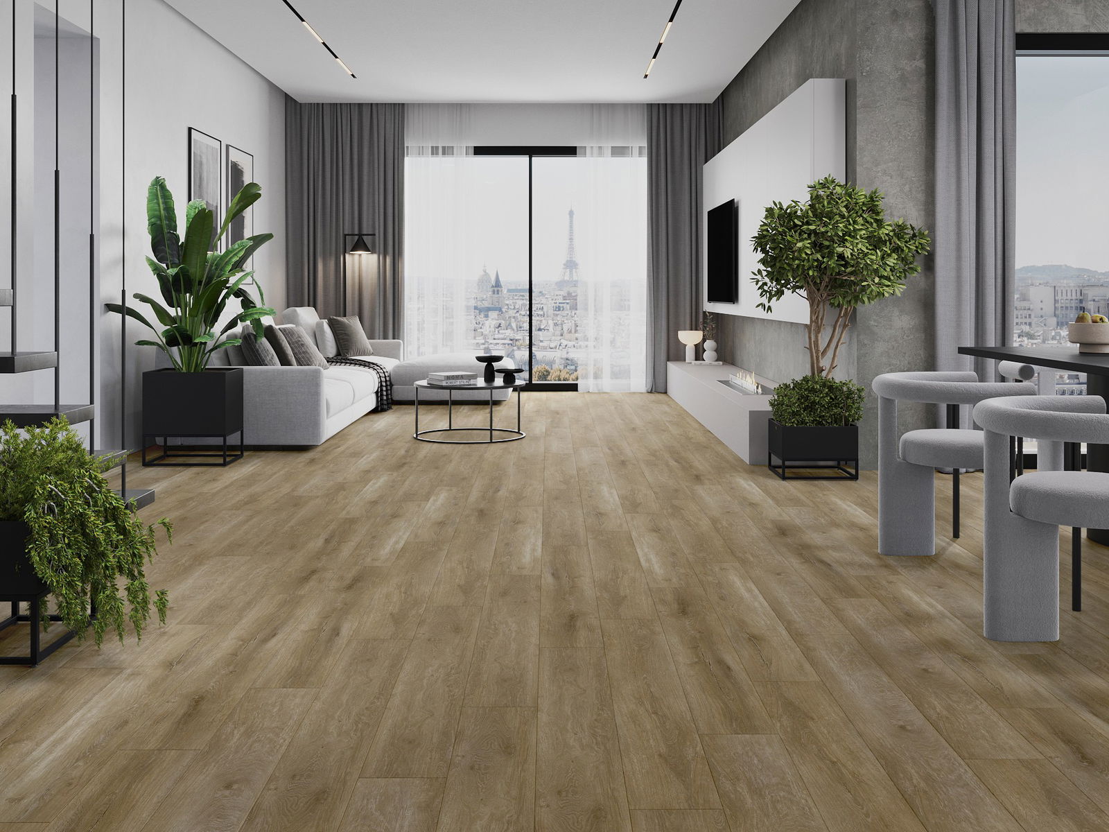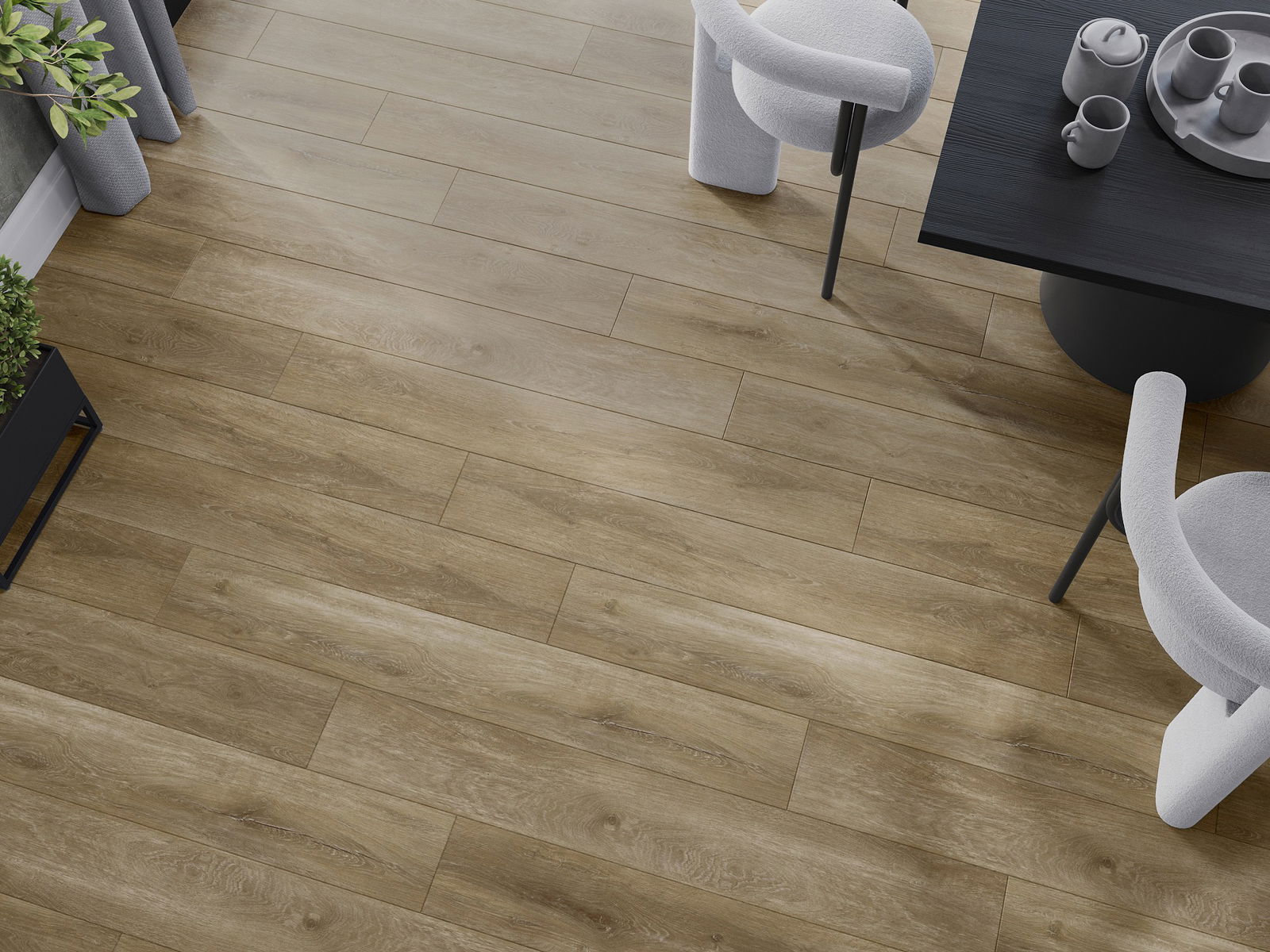 A panelek 4 oldali fugával rendelkeznek - minden oldal úgy lett kimarva, hogy összerakás után V alakú illesztés keletkezzen. Az ilyen dizájn hatására a padló kifejezettebb szerkezetet kap, ami mélységet és esztétikai jelleget ad neki. Ez a hatás különösen a modern berendezésekben értékelhető, ahol a részletek kiemelik a belső tér egyedi megjelenését.
