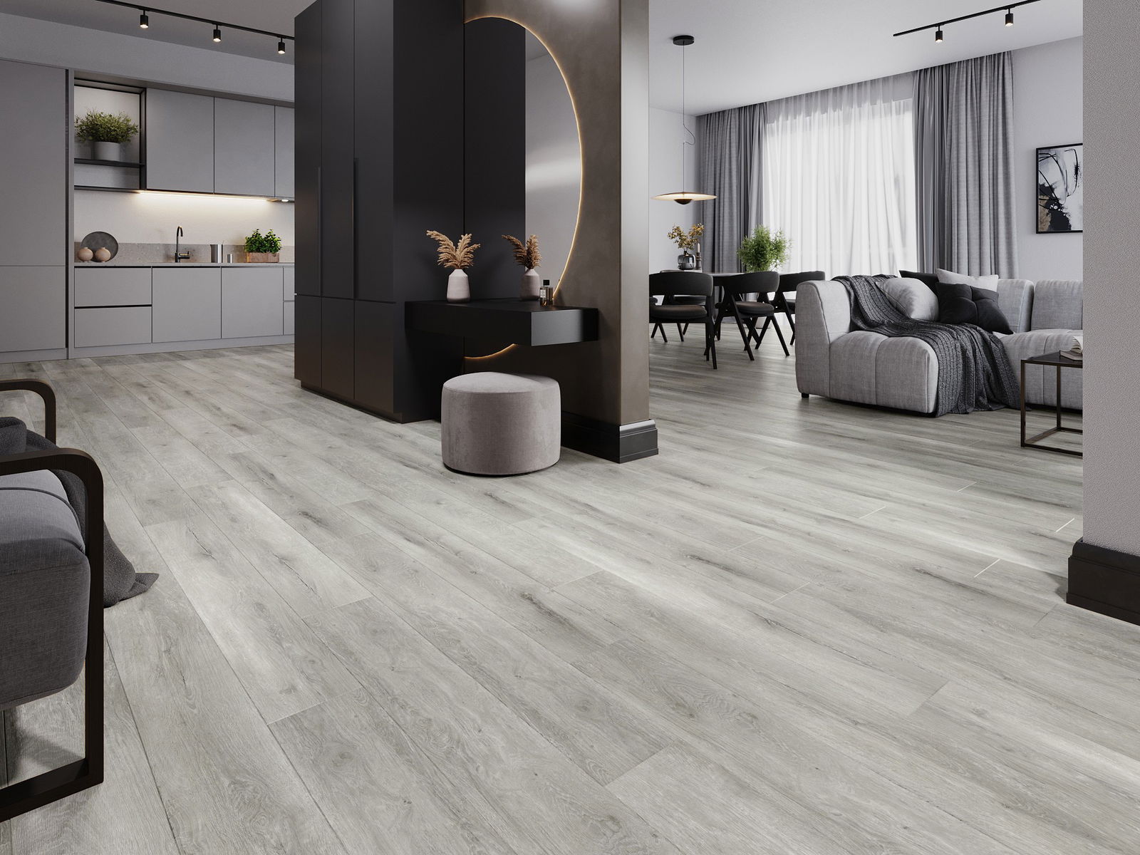 A panelek 4 oldali fugával rendelkeznek - minden oldal úgy lett kimarva, hogy összerakás után V alakú illesztés keletkezzen. Az ilyen dizájn hatására a padló kifejezettebb szerkezetet kap, ami mélységet és esztétikai jelleget ad neki. Ez a hatás különösen a modern berendezésekben értékelhető, ahol a részletek kiemelik a belső tér egyedi megjelenését.