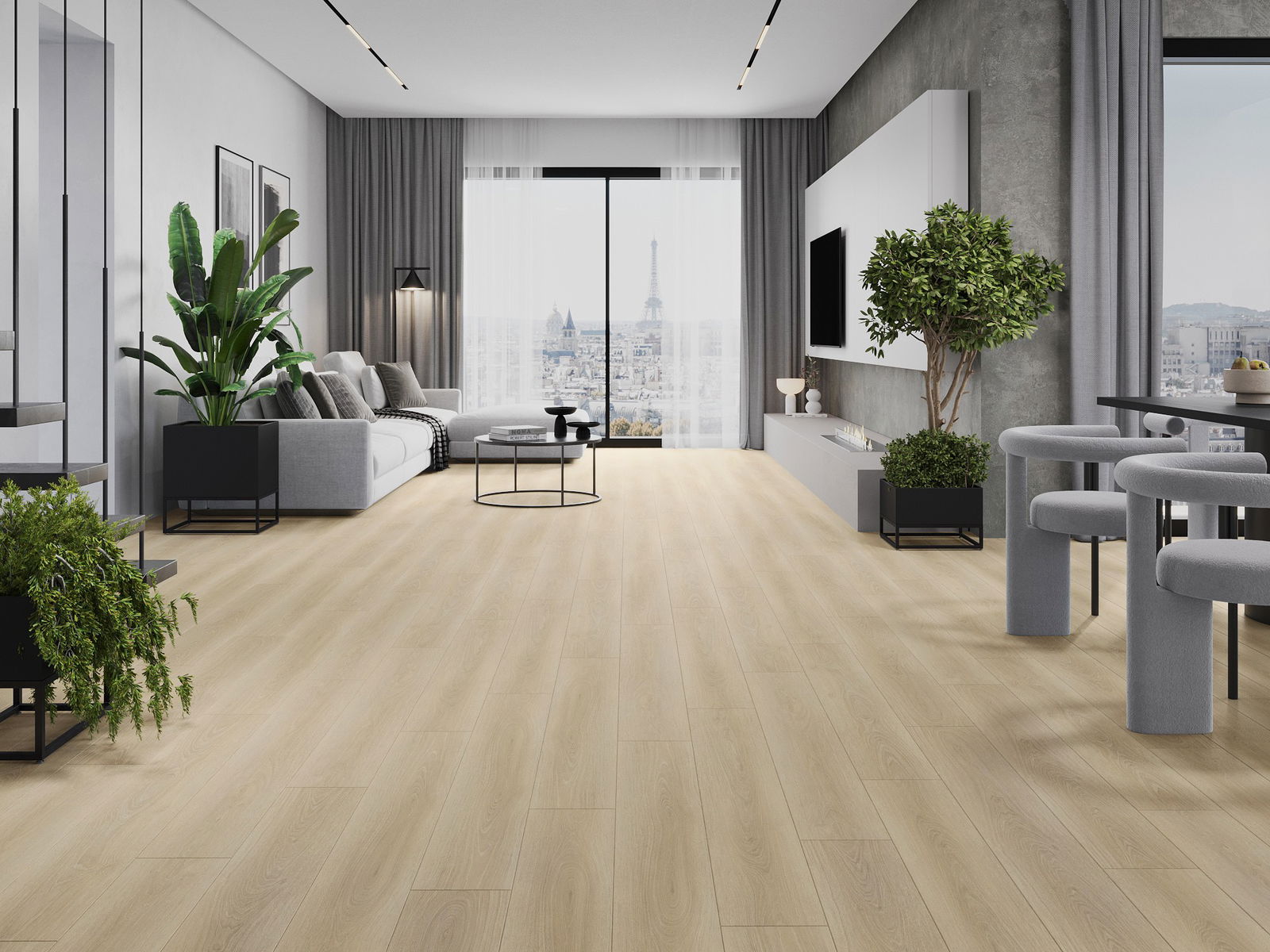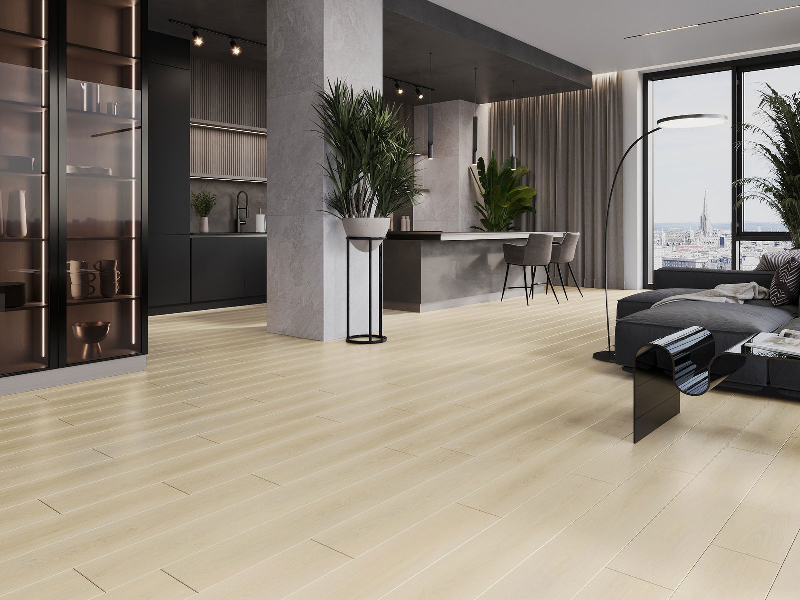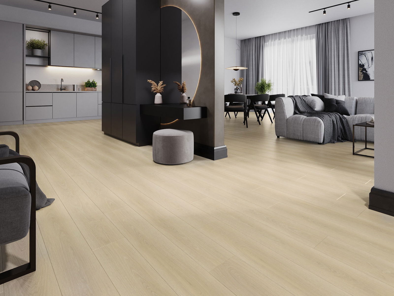 A panelek 4 oldali fugával rendelkeznek - minden oldal úgy lett kimarva, hogy összerakás után V alakú illesztés keletkezzen. Az ilyen dizájn hatására a padló kifejezettebb szerkezetet kap, ami mélységet és esztétikai jelleget ad neki. Ez a hatás különösen a modern berendezésekben értékelhető, ahol a részletek kiemelik a belső tér egyedi megjelenését.