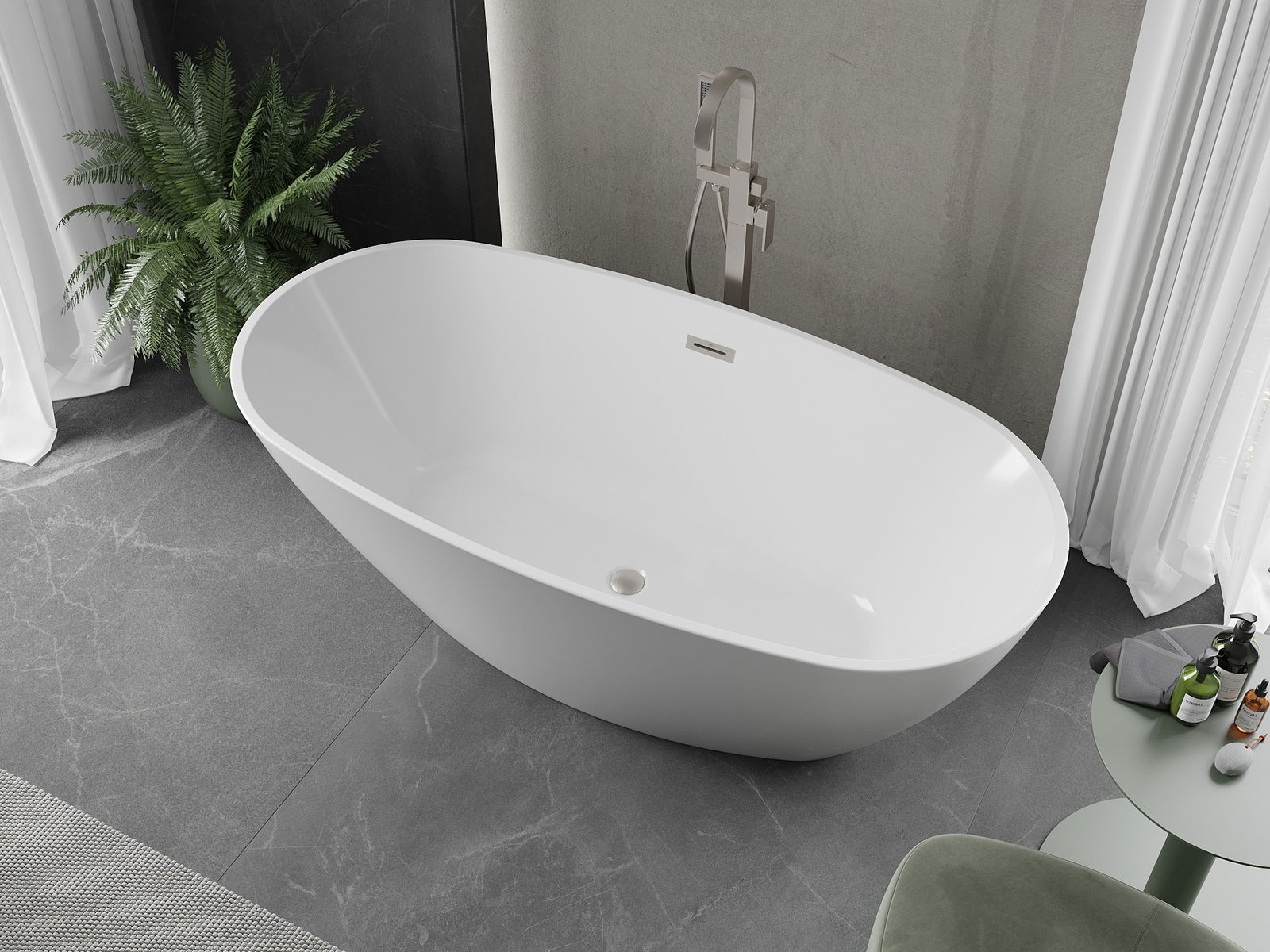 A szabadon álló fürdőkád a funkcionalitás és az elegancia tökéletes kombinációja. Mérete 180 x 95 cm, magassága 58 cm, ideális választás bármely fürdőszoba belső terébe. Szaniterek akrilból készült, így ellenáll a mattosodásnak és az UV-sugaraknak. Ovális alakja, fehér színe és kefével nikkel felülete különleges stílust kölcsönöz neki. A túlfolyó nyílás valamint a csomagban található szifon és klikk-klakk dugó praktikus és vonzó opcióvá teszik ezt a fürdőkádat hosszú évekre.