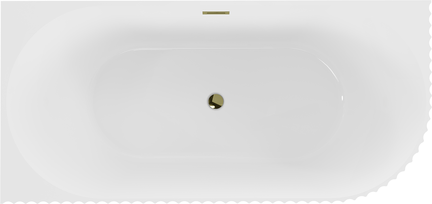 Mexen Gia szabadon álló sarokkád bordázott bal 150 x 75 cm, fehér fényes, arany túlfolyó - 52701507500L-50