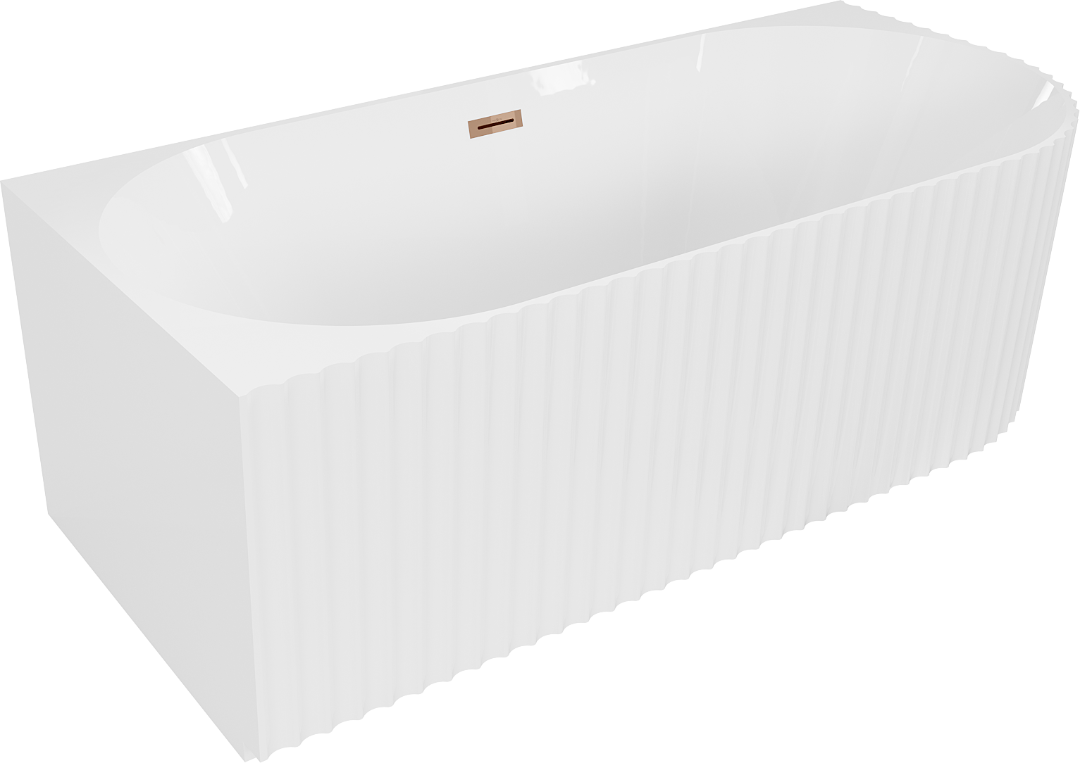 Mexen Gia szabadon álló sarokkád bordázott bal 150 x 75 cm, fehér fényes, túlfolyó rózsaarany - 52701507500L-60