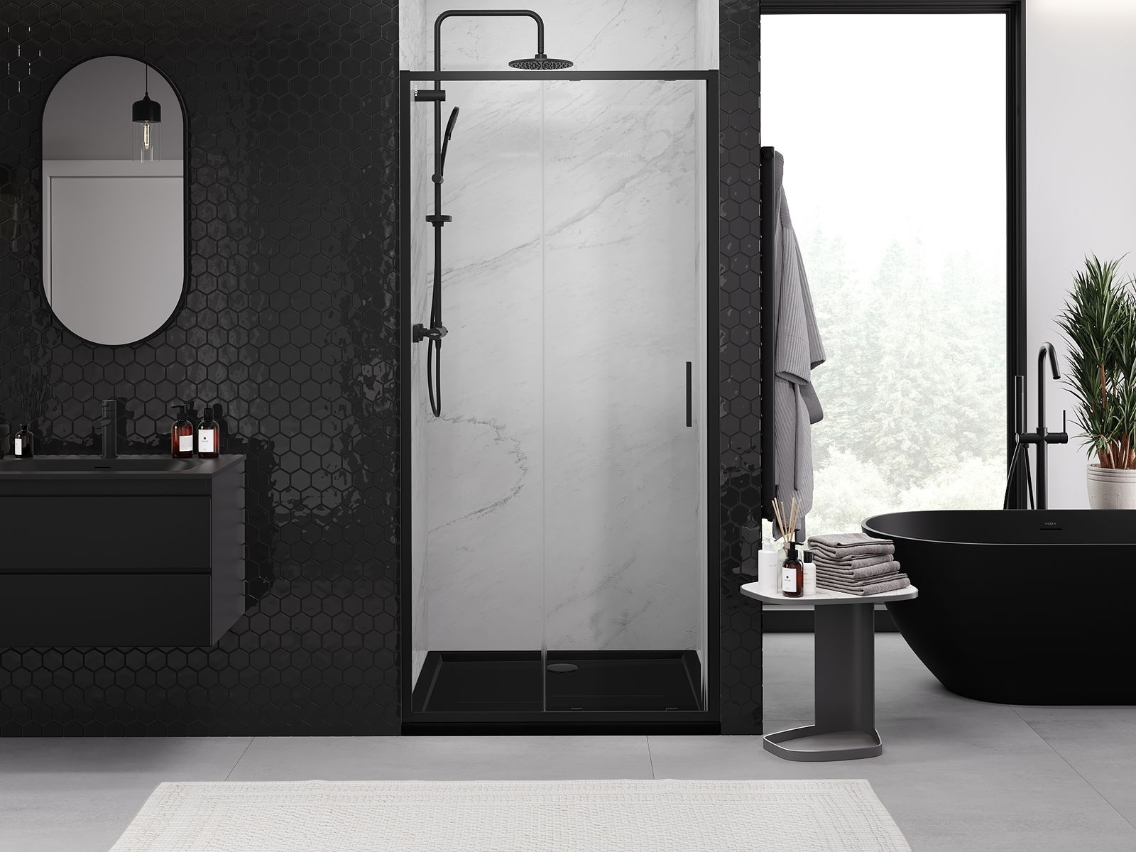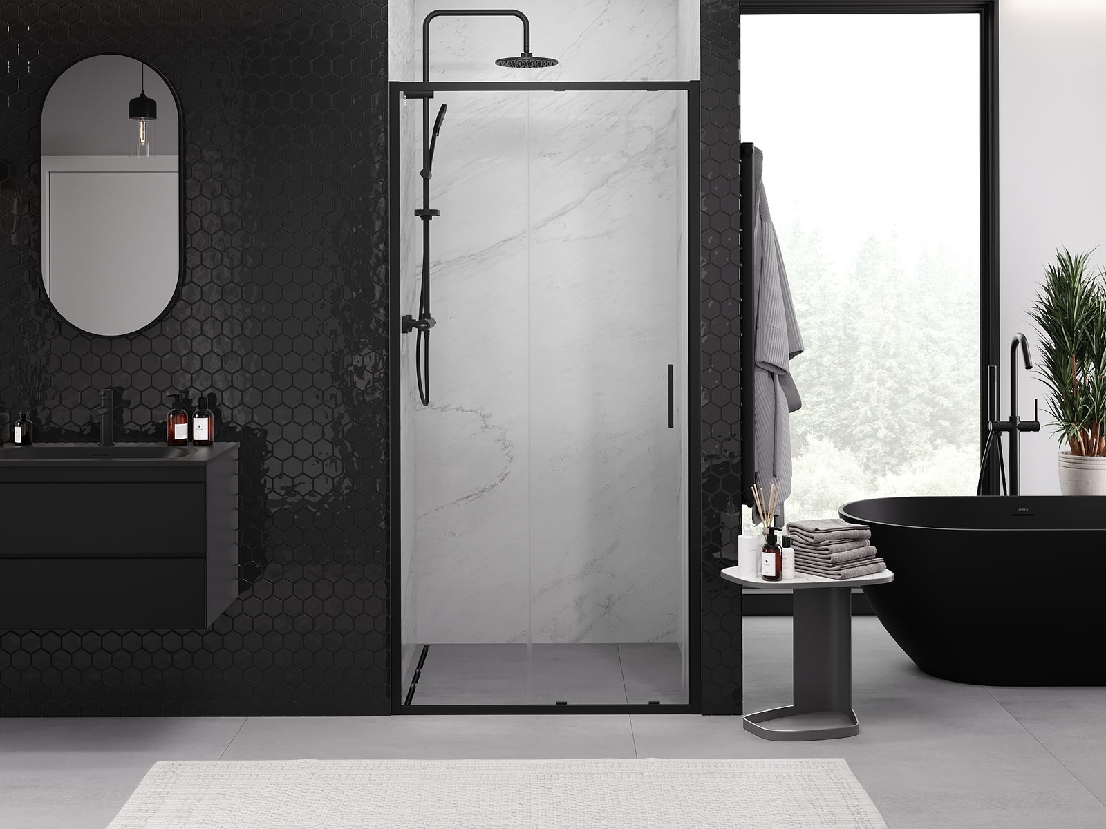 Mexen Exo tolóajtós zuhanyajtó 110 cm, átlátszó, fekete - 8151-110-000-70-00