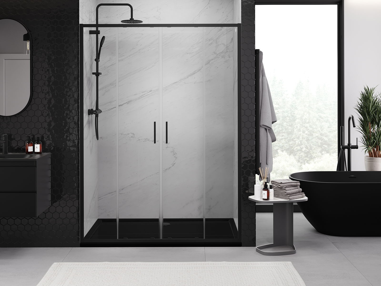 Mexen Exo kétszárnyú, toló zuhanyajtó, 160 cm, átlátszó, fekete - 8152-160-000-70-00